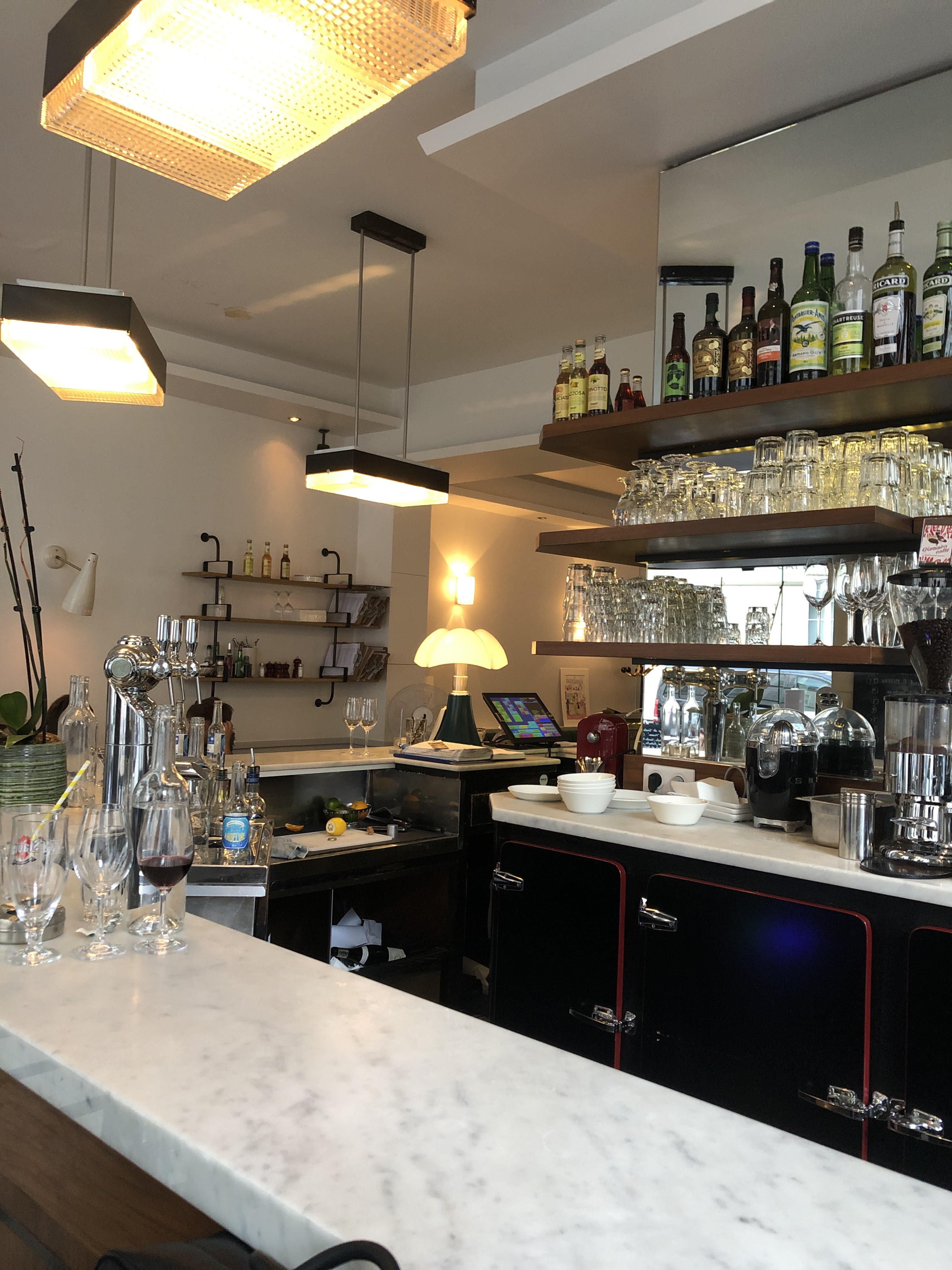 Je viens de prendre un verre de vin avec un ami là-bas. Le serveur très sympathique et drôle.