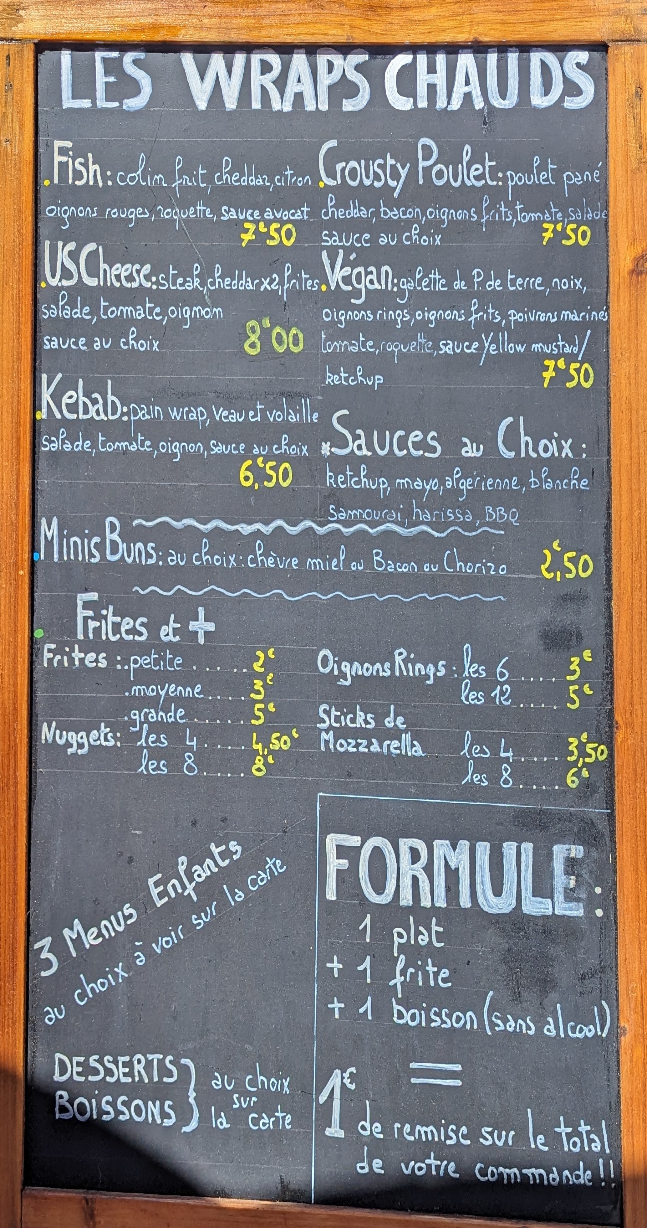 Excellent ! Tombé ici par hasard en vélo un midi. Le wrap au cabillaud... frais délicieux... une tuerie !!! N'hésitez pas à vous arrêtez.