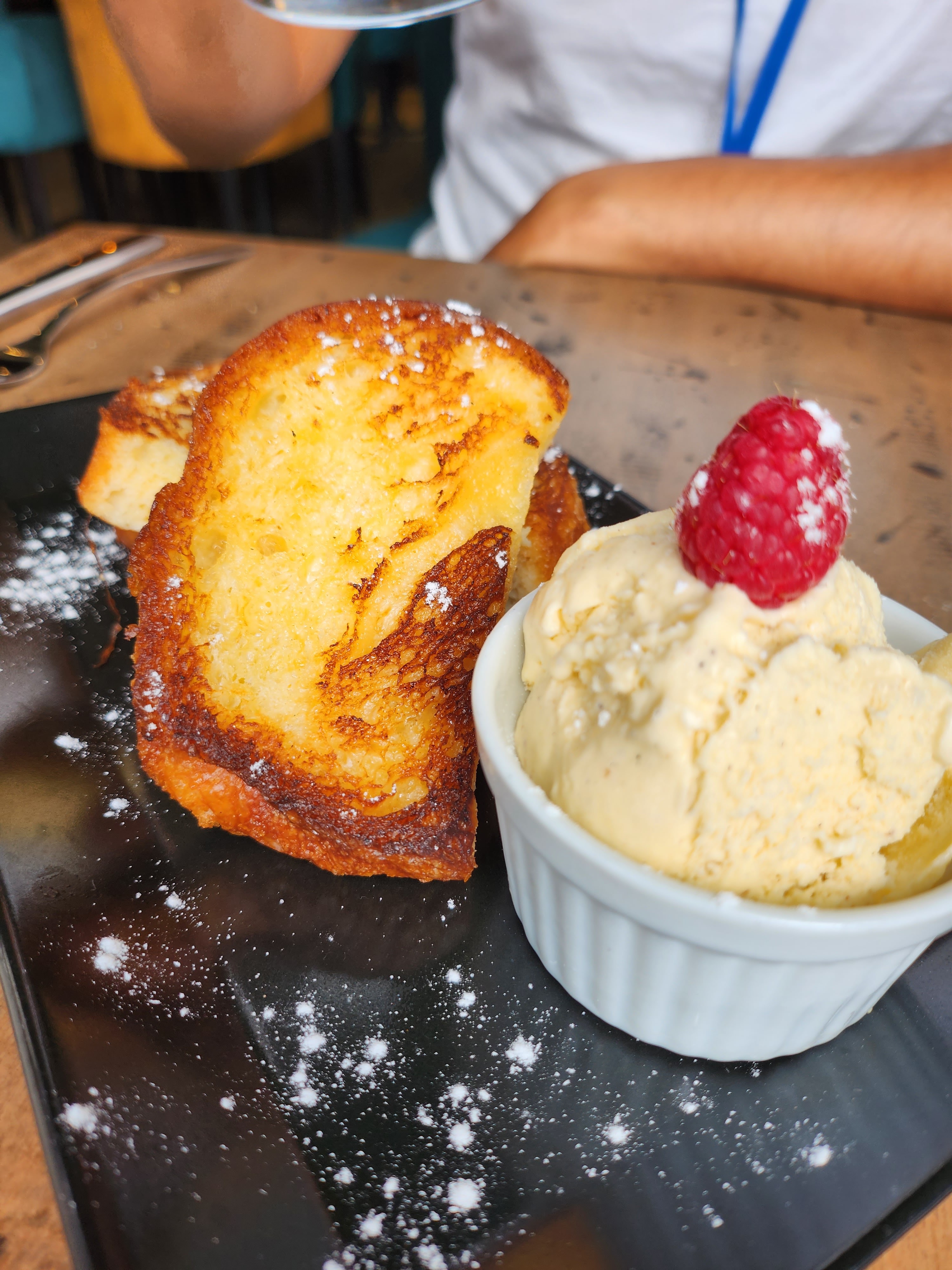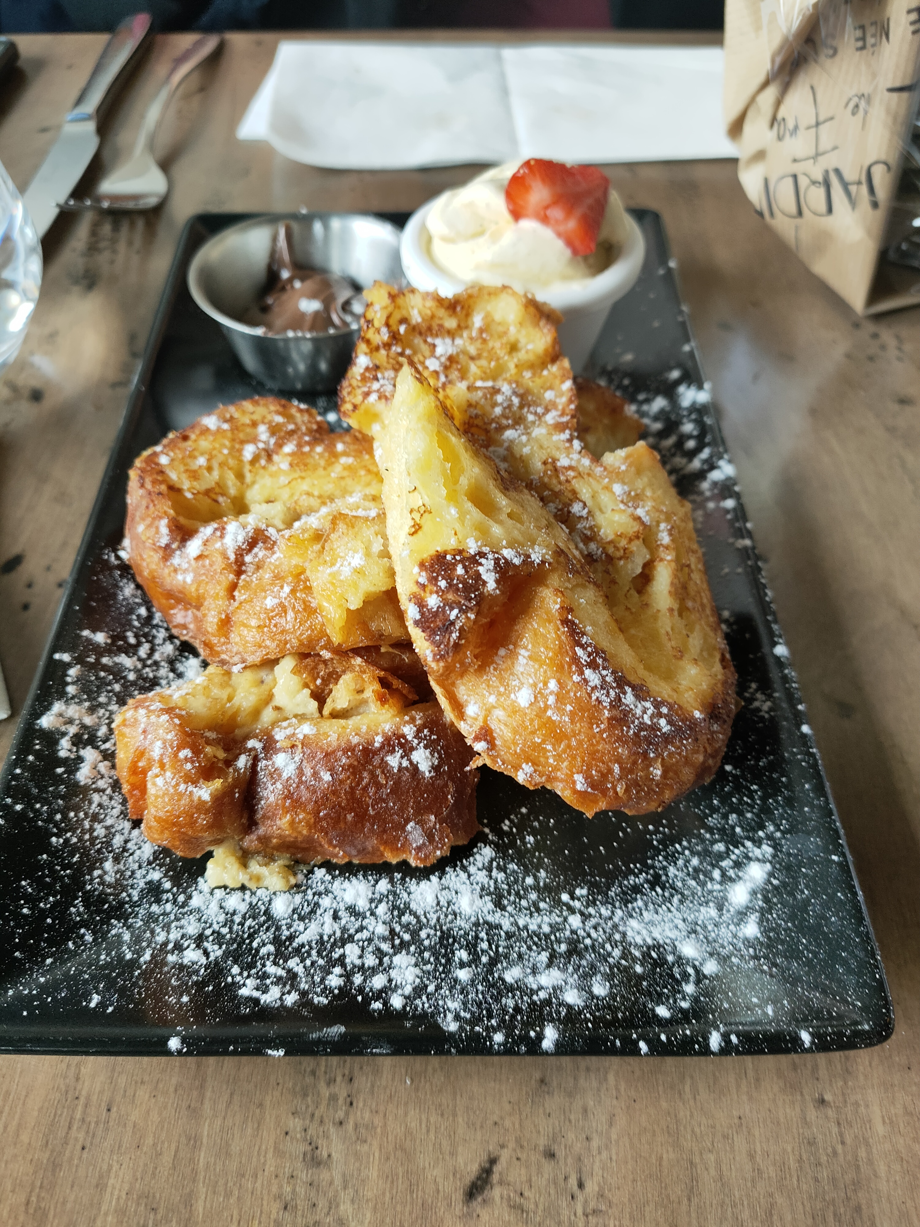 Brunch du dimanche toast plutôt bon et copieux, par contre déçue des pancakes trop simplistes. J'avais effectuer une commande spécifique restrictions alimentaires, elle n'a pas ete prise en compte j'ai demandé à renvoyer les assiettes à 2 reprises, c'est dommage trop de monde, le service est deborder. J'ai eu l'occasion de diner au garden coffee largement mieux hors brunch