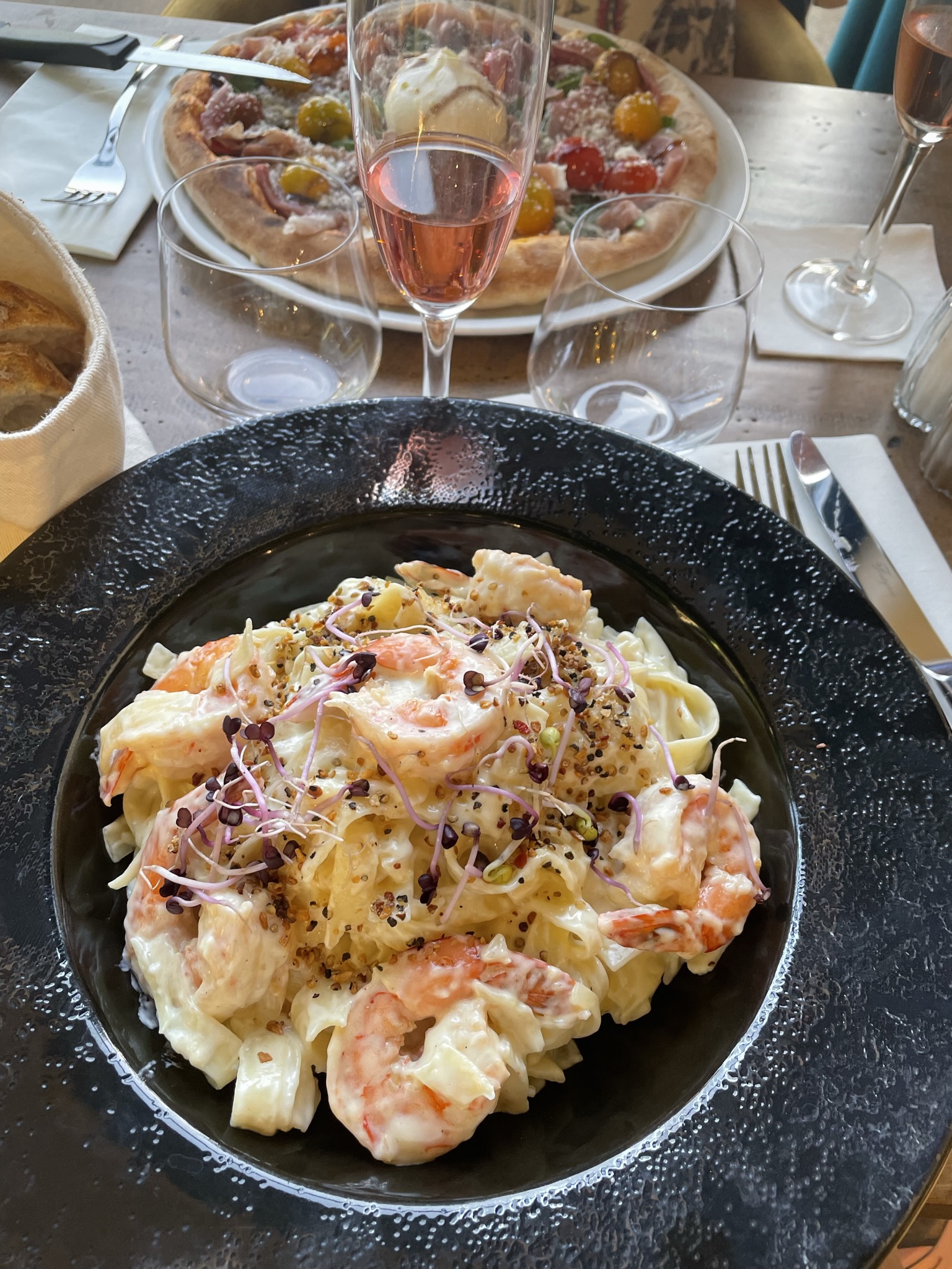 Un restaurant très esthétique. L’ambiance y est bonne et le service convenable. Le cocktail était top en revanche le plat beaucoup moins. J’étais même déçue. Nous avons pris un risotto crevette. La présentation laisse vraiment à désirer ( voir photo ). Cela ressemblait plus à une bouillie, ou un porridge. Le goût n’était pas là non plus …. Un riz imbibé de crème fraîche avec 4 crevettes dans le plat. Aucun goût de parmesan, ni même de vin blanc. J’ai du ajouter du sel et du poivre pour avoir un peu de goût. De plus des masses de riz coagulées au fond de la casserole nous avaient été servies. Pour le prix, j’avoue être déçue…. Pour résumé c’est un bel endroit avec des personnes agréables cependant je déconseille ce plat en particulier.