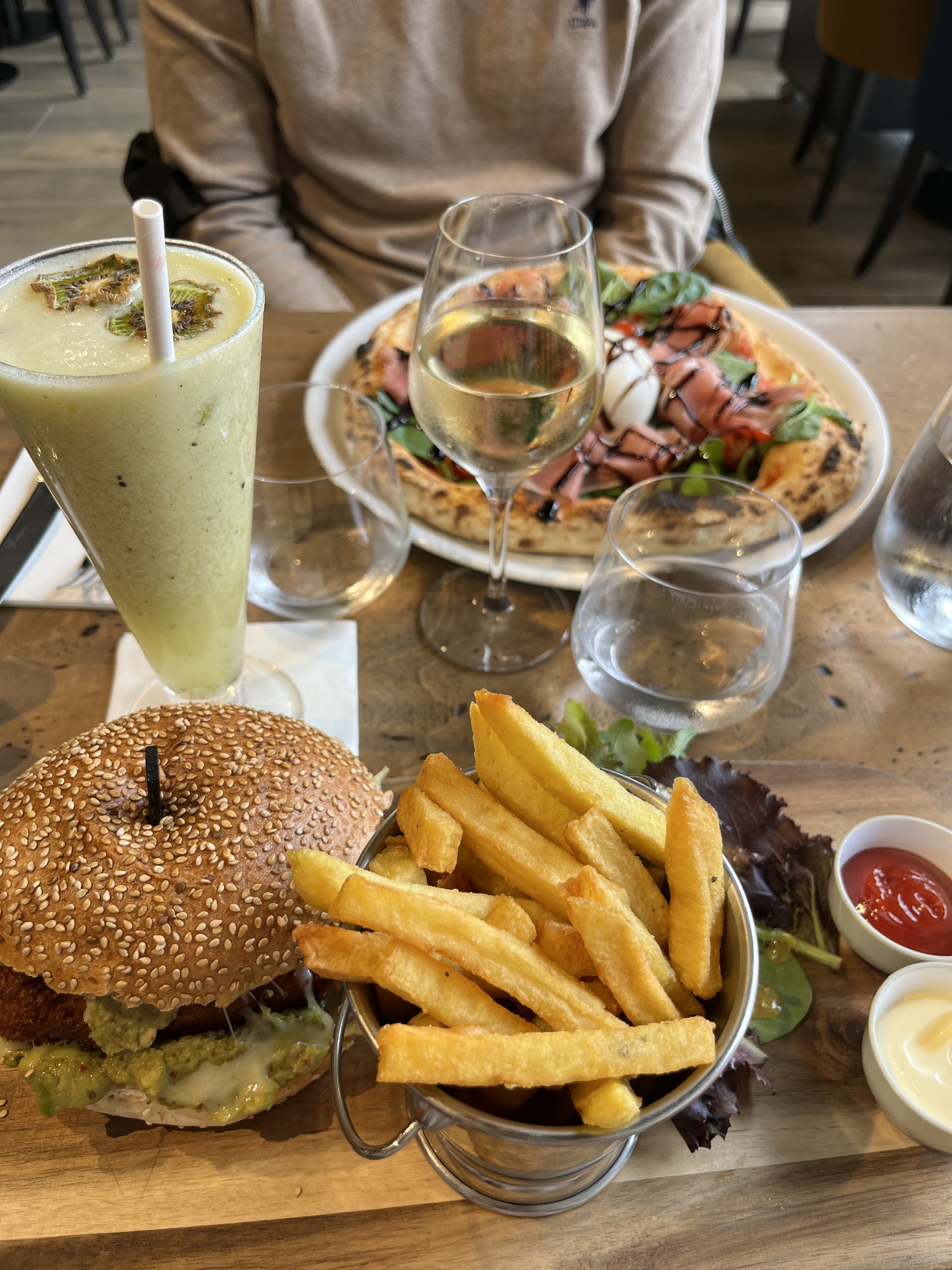 Restaurant super chic et spacieux. super bien accueilli par le personnel. Les cocktails sont frais et originaux. Nous avons commandé le burger poulet et une pizza. Nous reviendrons à coup sûr pour profiter de la Grande terrasse !