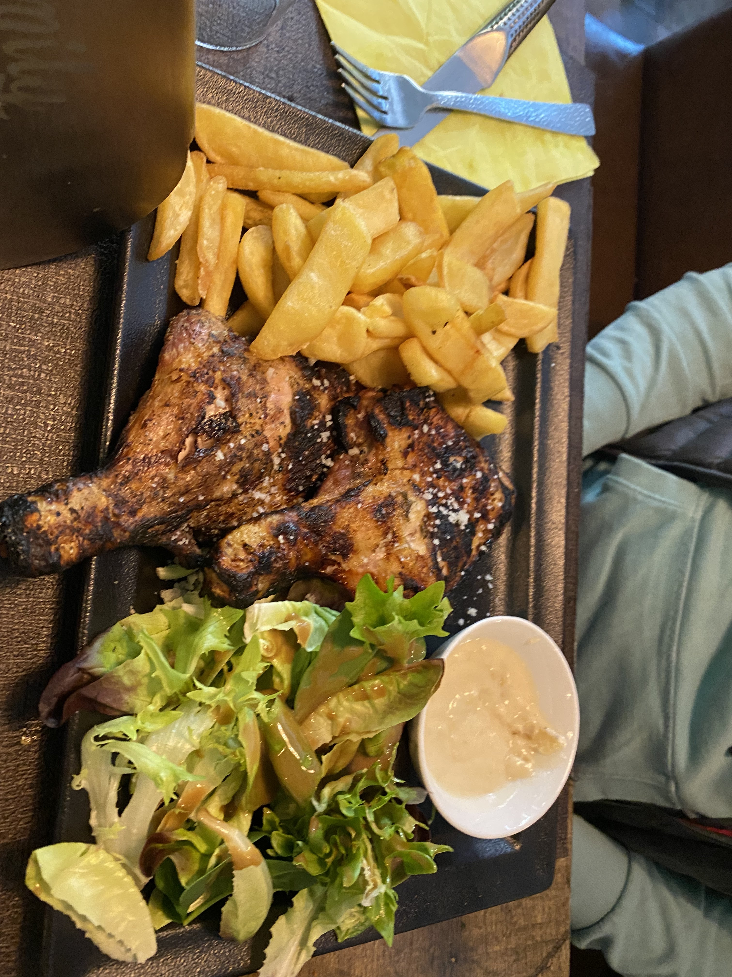 A notre arrivée la personne qui prend la commande nous a mis une pression monumentale ( nous ne savions pas que nous étions dans un restau expéditif). Si ce n’était que cela mais non la nourriture la viande précisément était carbonisée vraiment trop cuite et l’assaisonnement était médiocre. Pour que vous ayez en tête le goût de la viande c’était comme s’ils avaient chauffer de la viande de la veille mais au micro onde. La salade quant à elle, était servie comme si nous étions des tortues. Une vieille vinaigrette en accompagnement digne d’une cantine d’école primaire. C’est dommage de payer ce prix et de devoir finir son repas au fast food juste après. Le Pepsi était bon et le pain également. Je ne recommande donc car vraiment déçu.