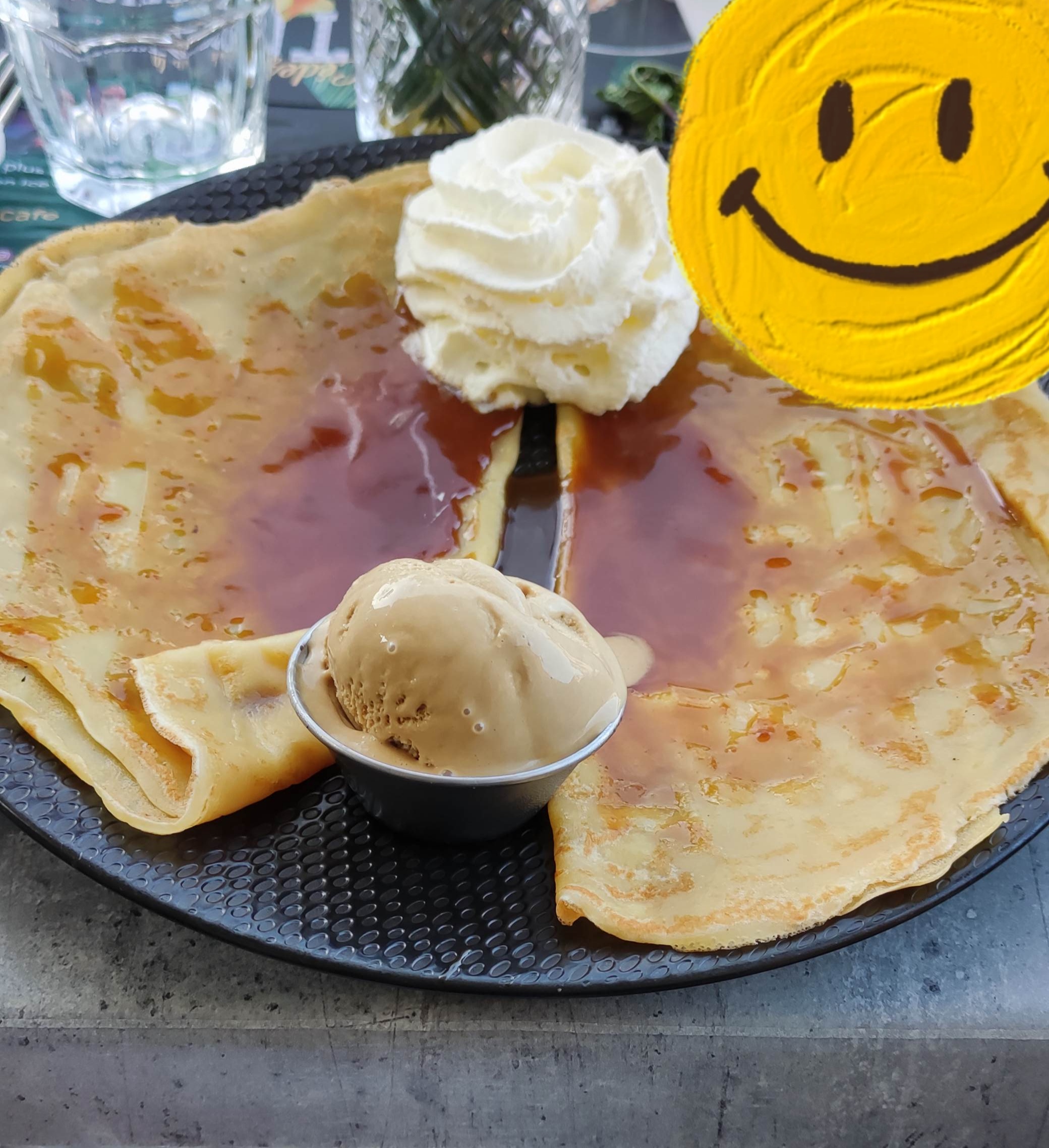 Un carolo meringué et praliné typique de Charleville-Mézières au calme de la terrasse du Garden Ice Café sur la Place Ducale. Que demander de plus pour être heureuse ?