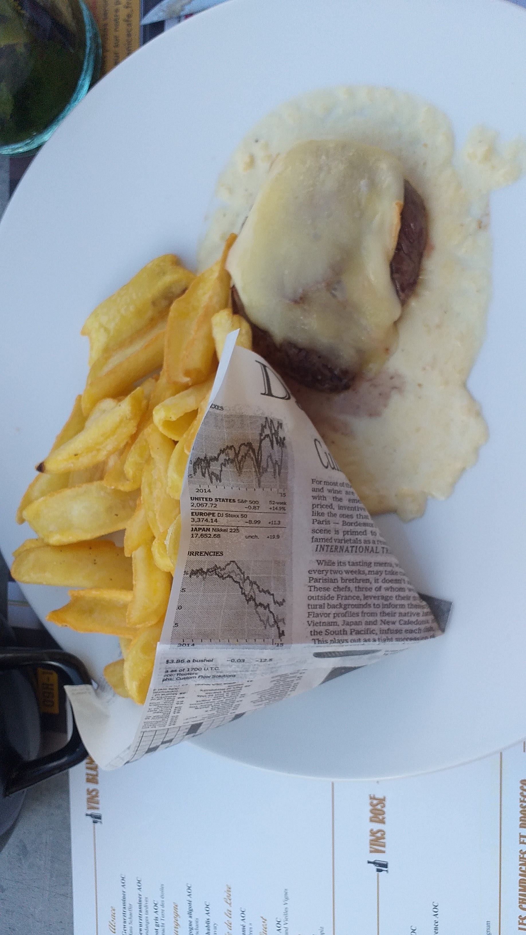 Curieux de manger dans une bulle sur la place, finalement le menu imposé n'étant pas à notre goût ça sera en salle. La déco et l'accueil est vraiment sympa A deux chacun une viande et une petite panière de frite. Finalement j'ai repris une portion de frite supplémentaire du double de la panière facturé biensure mais la qualité de la cuisine et du décor rend la visite agréable