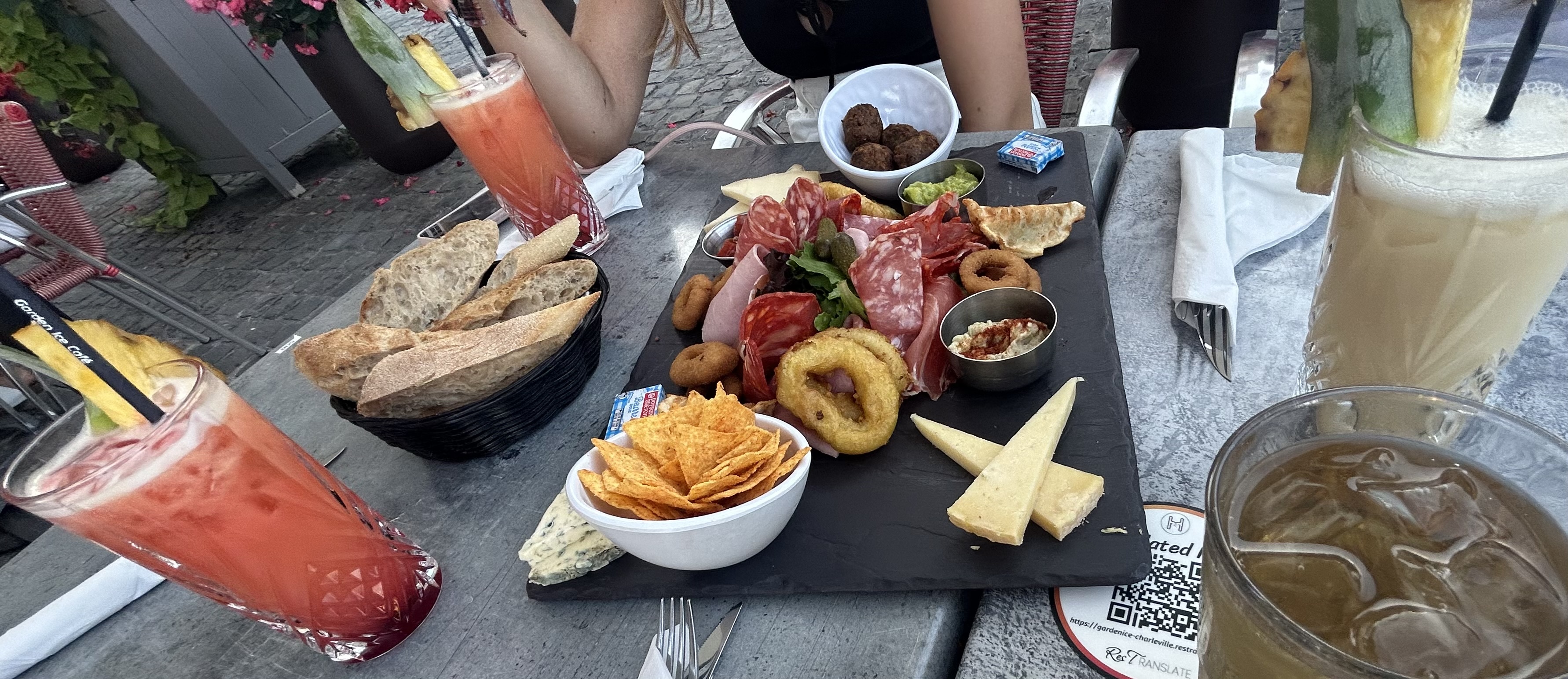 Restaurant très vivant sur la place Ducale, possibilité de boire un verre ou manger en terrasse ou à l'intérieur. Personnellement j'aime beaucoup la déco, en intérieur il y a un brouhaha constant.( ça ajoute quand même un côté chaleureux ). Concernant les plats j'ai pris la formule a 20€ cetait bon et les frites sont servies généreusement. Les tapas (trio végétarien) était très décevant. Les salades sont copieuses. Le service est rapide et satisfaisant.
