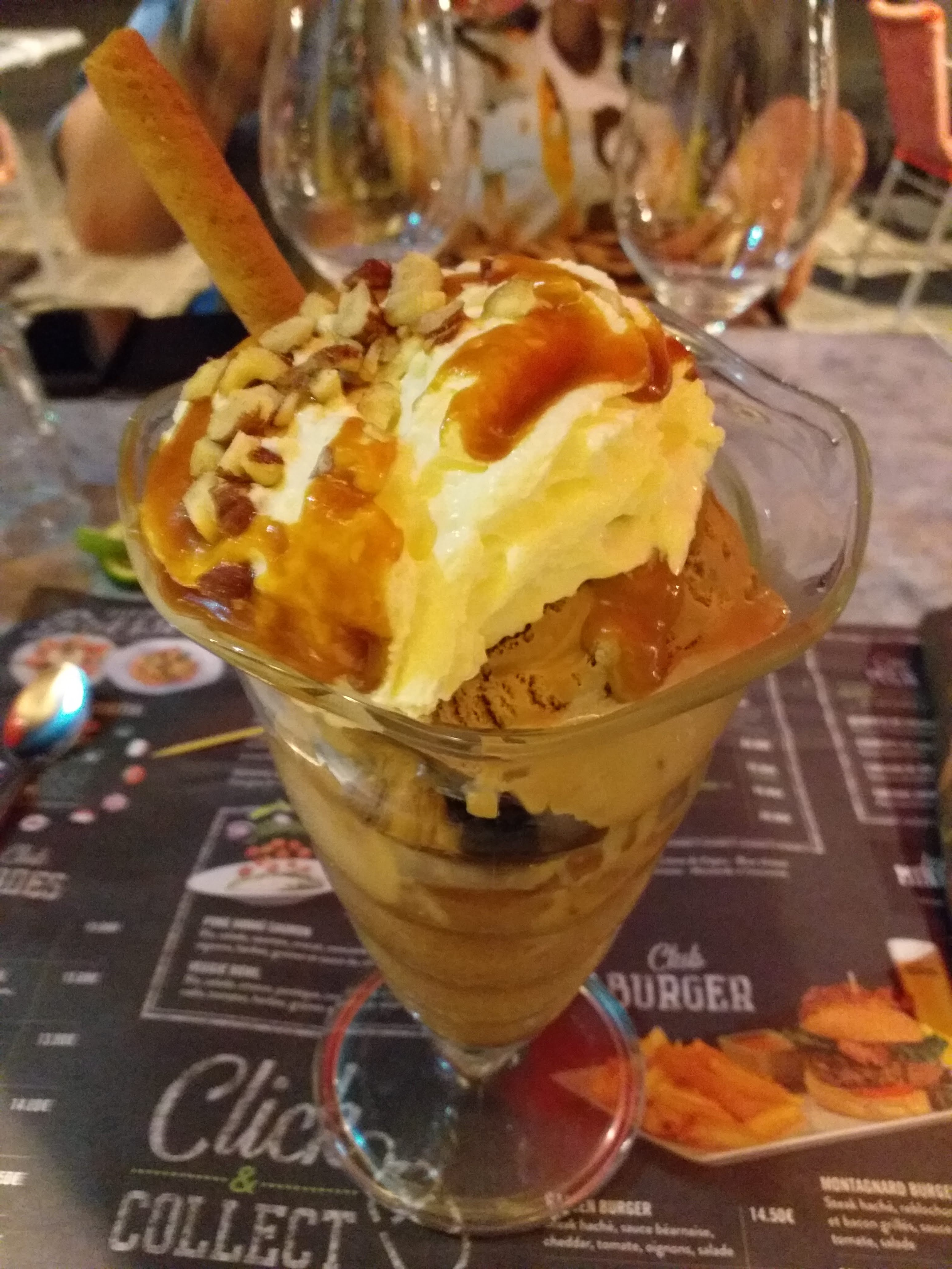 Moquette très sale. Nous avons attendu très longtemps ,la glace avait bcp trop de chantilly