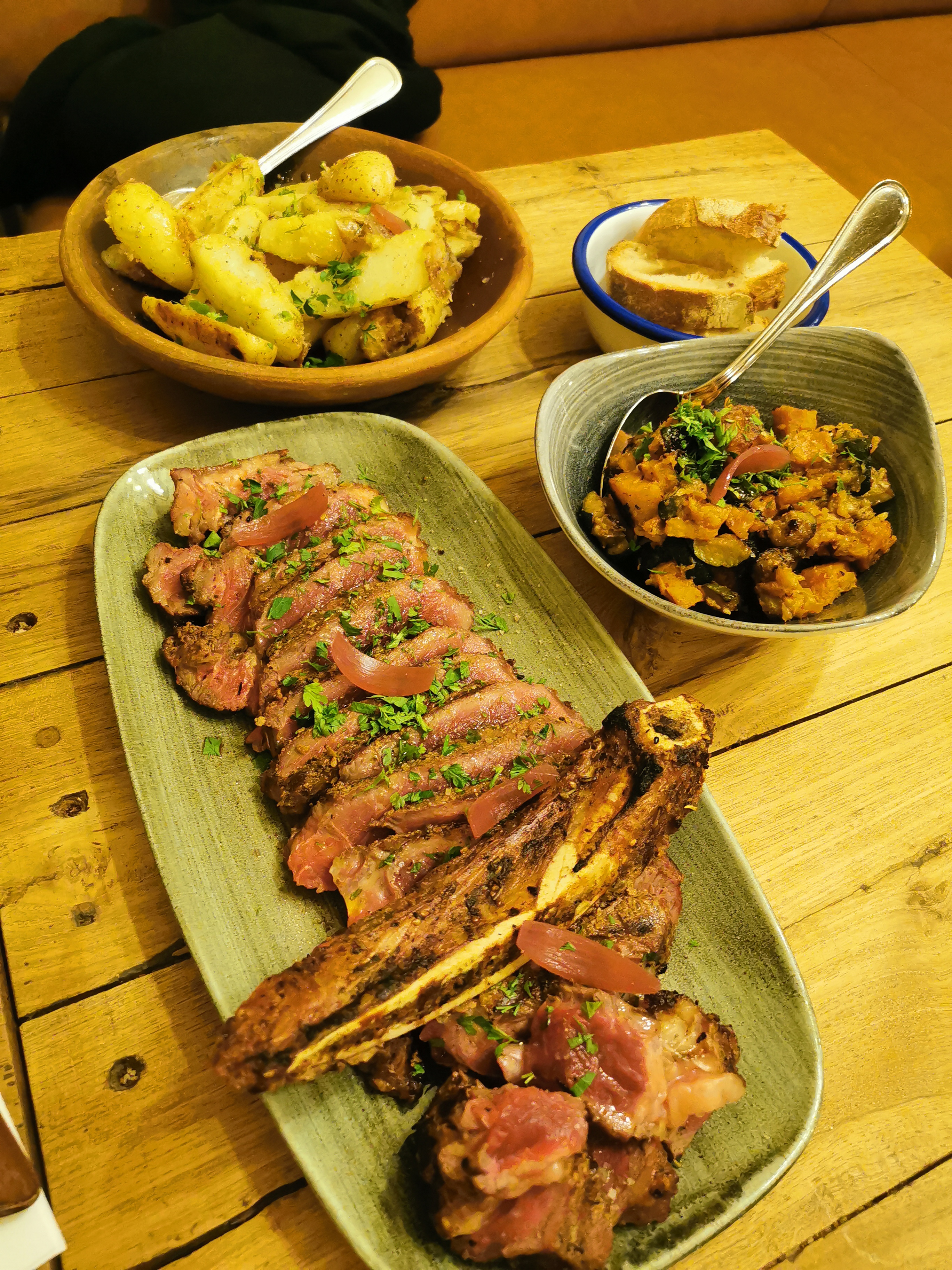 Excellente cuisine faite maison avec une côte de bœuf cuite au feu de bois qui lui donne un goût inimitable. Je recommande