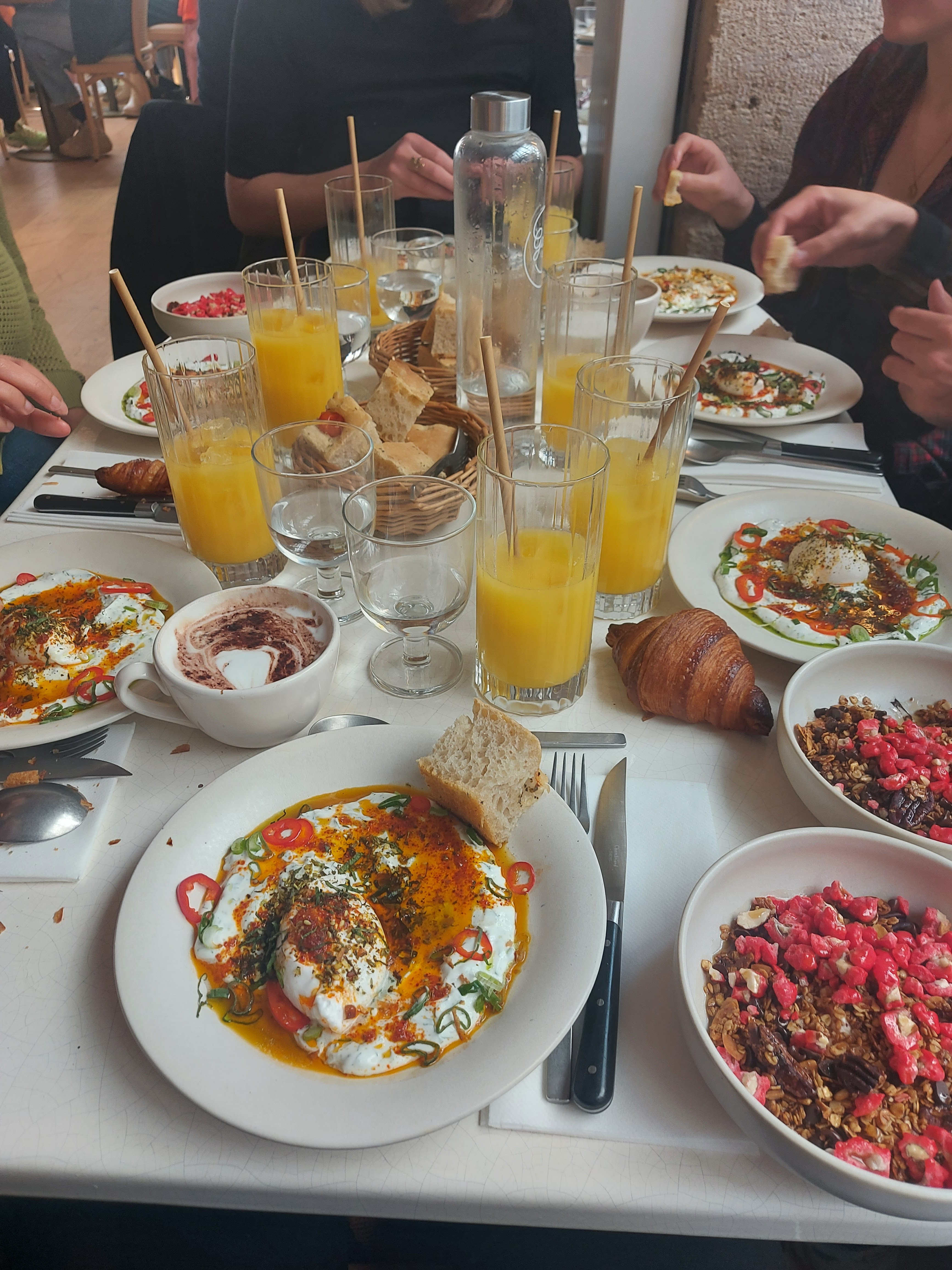Un excellent brunch à 26€ avec une boisson chaude ou froide, un croissant bien au beurre et croustillant (peut être laisser un second choix de pain au chocolat), un yaourt miel granola, un plat salé (j’ai découvert le Turquish egg) et un cookie. Un service très rapide, efficace et sympathique. À faire les yeux fermés.