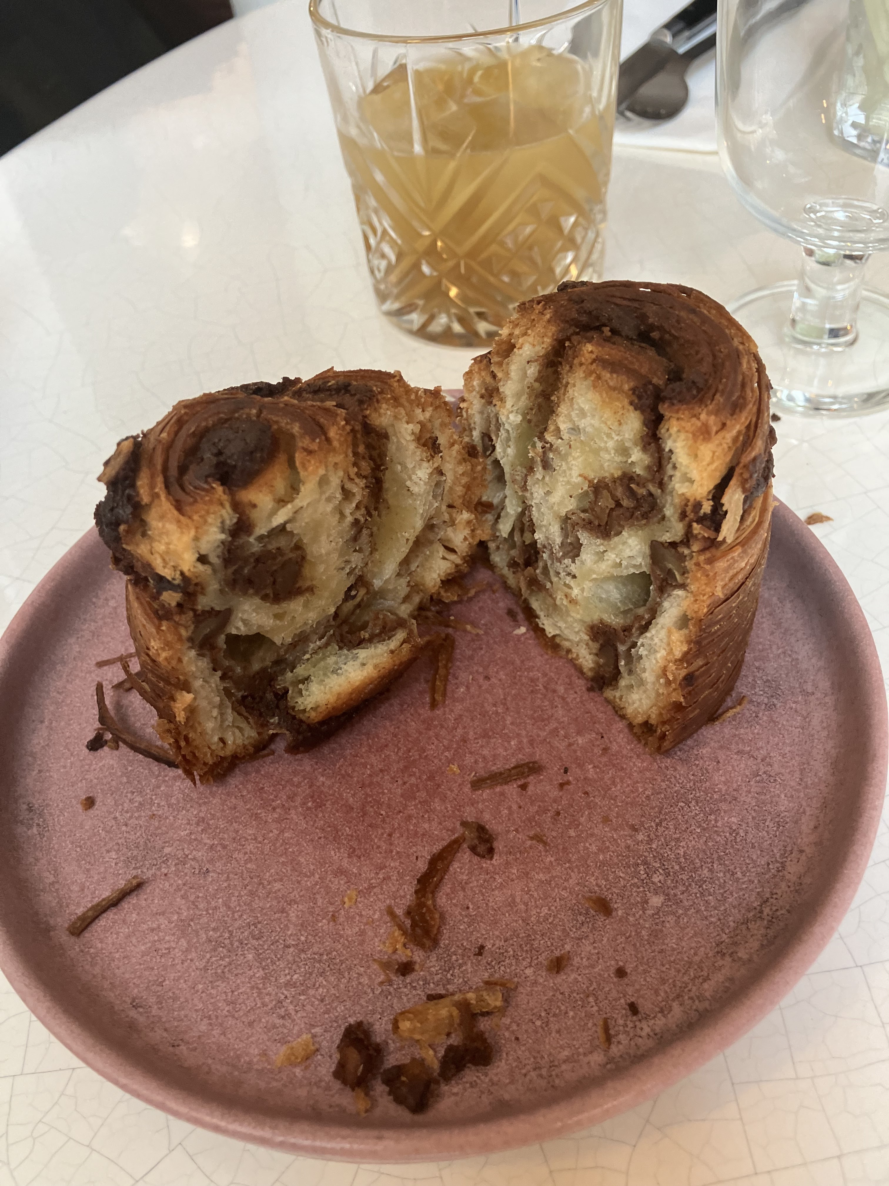 Mon avis est très mitigé, je suis assez déçue de l'expérience de ce jour.... D'abord il manquait les focaccia qui vont avec les turkish eggs et l'on ne nous avertit pas en amont c'est nous qui avons dû demander du pain en remplacement... Ensuite nous avions demandé 4 boissons il y a eu confusion. 2 boissons identiques nous sont apportées par erreur, nous la renvoyons. Ensuite on nous indique que les thés souhaités ne sont plus dispo au moment où mes amis reçoivent leurs boissons... Puis finalement après de l'attente les thés nous sont servis mais ils ont oublié de retirer de la note la boisson chaude qui nous avait été apportée par erreur.... Résultats il y a 6euros en plus sur la note qui ont été comptés pas erreur mais que nous ne voyons que le soir... Le restaurant étant loin de chez nous je pense que l'on peut les oublier. Trop de confusion ce jour. Ce n'est pas aux clients de vérifier l'addition....je ne trouve pas cela correct....enfin les roulés sont assez gras et il manque de crème. On ne sent ni le goût de la pistache ni de la noisette mais plus le beurre de la pâte feuilletée...