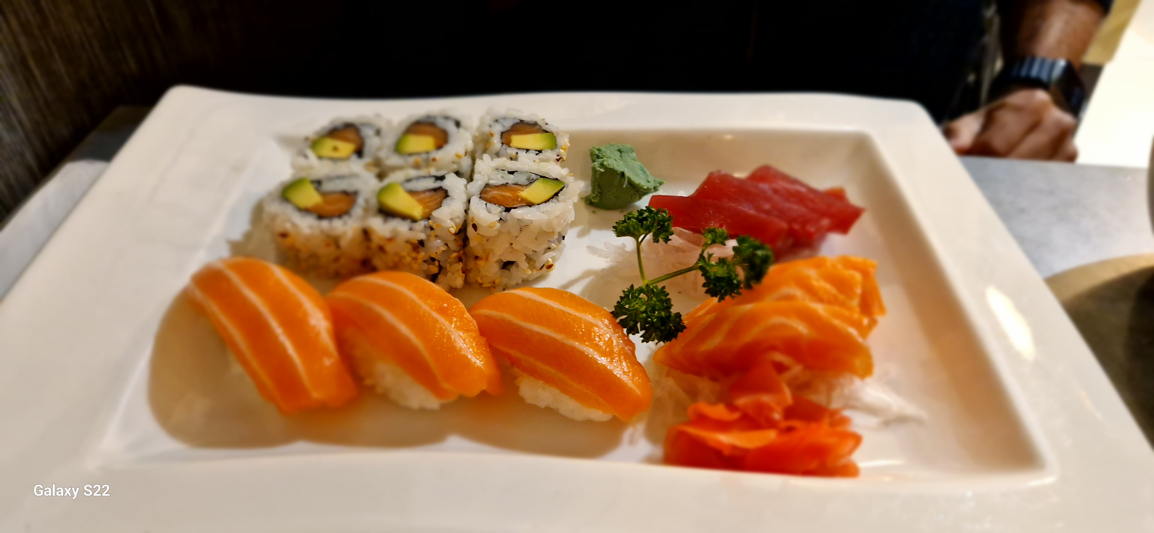 Possibilité de déjeuner en terrasse à l’ombre, du personnel agréable et masqué, des sushis très frais et des tranches épaisses entourant les rolls (ce n’est pas comme cela partout !). A recommander !