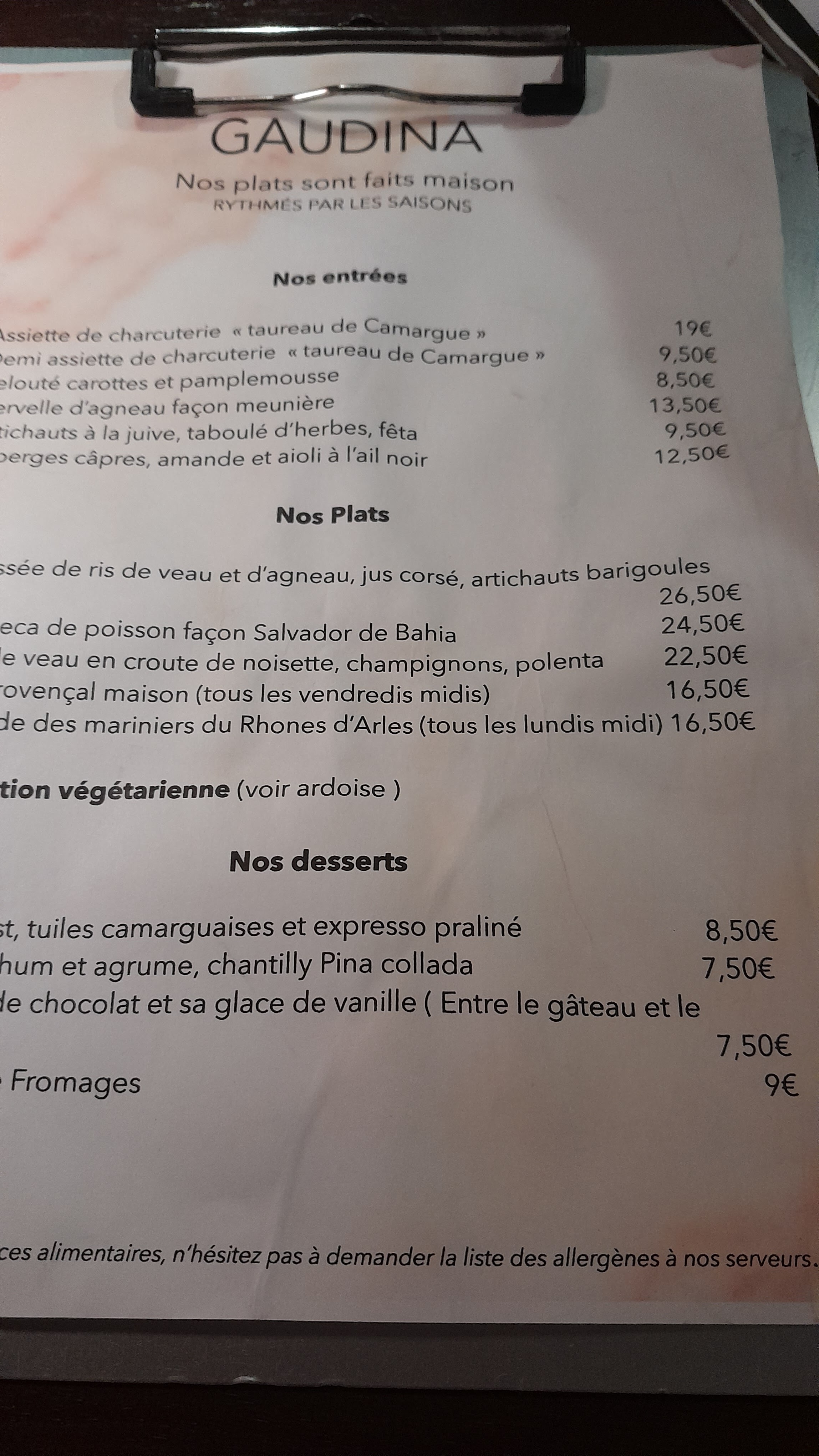 Très bonne expérience à la gaudina! Le personnel du restaurant nous a fourni un très bon accueil chaleueux et des plats locaux copieux et délicieux. Je recommande vivement cette adresse incontournable à Arles !