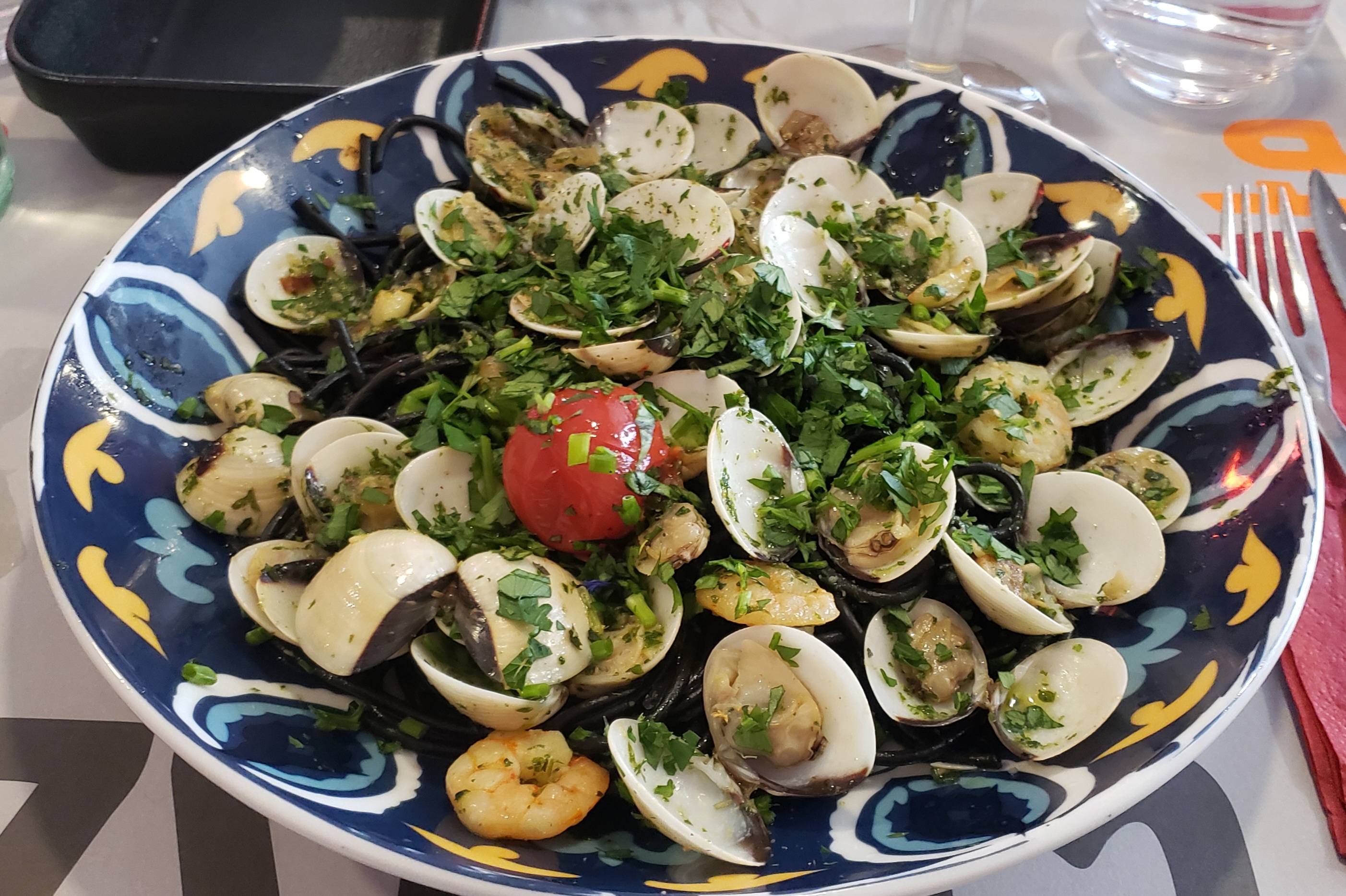 Déçue par les spaghettis à la vongole, trop cuits sans goût et qui baignaient dans l’huile…. Ayant déjà mangé à la gazzetta , je n’en avais pas gardé ce souvenir ,à croire que le cuistot à changé ?