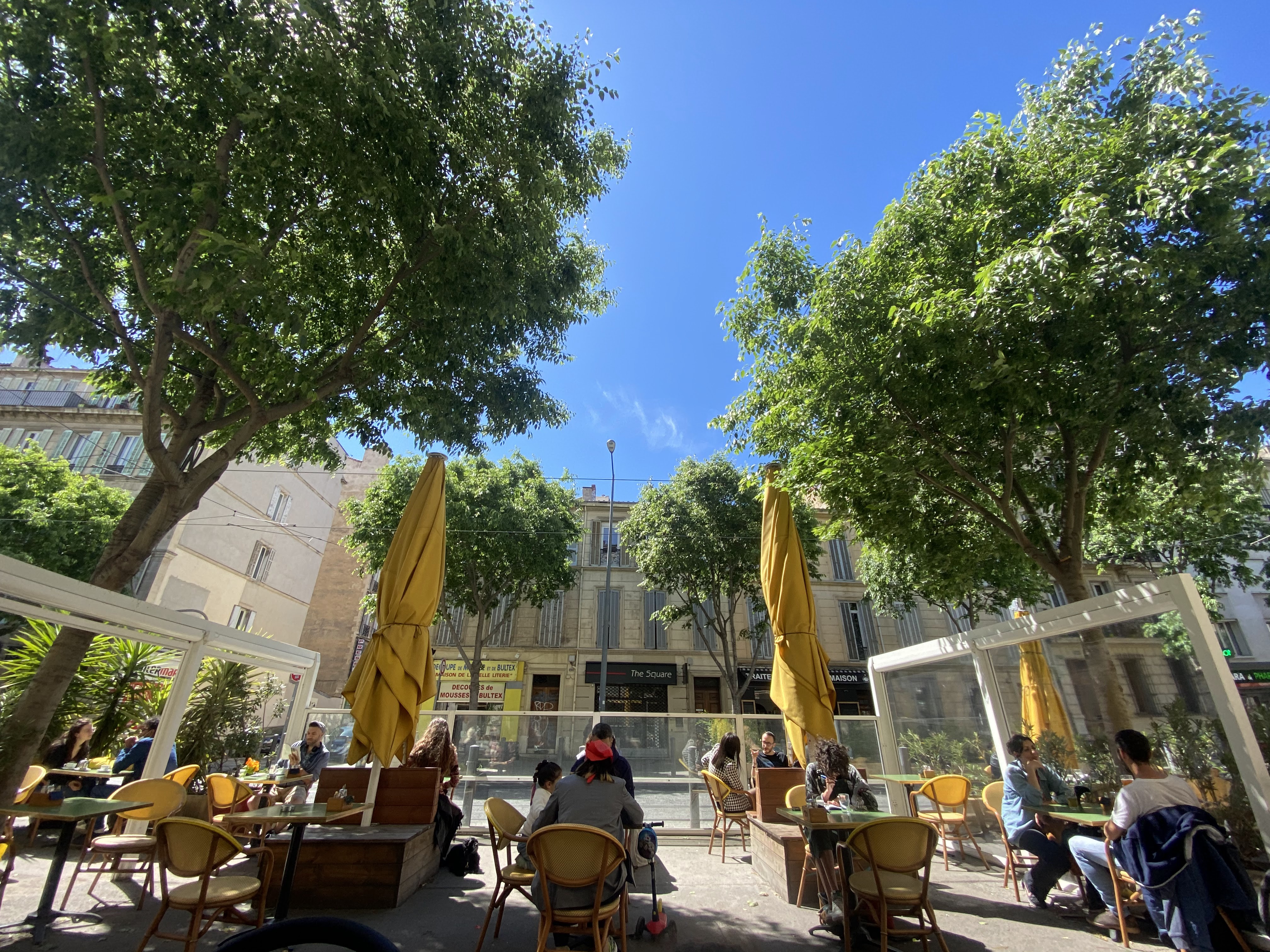 Terrasse bien située dans le quartier bobo de Marseille, un service toujours souriant, un ptit dej. sur le pouce à un prix imbattable et des plats ultra frais du marché pour le lunch... On comprend la clientèle d'habitués!