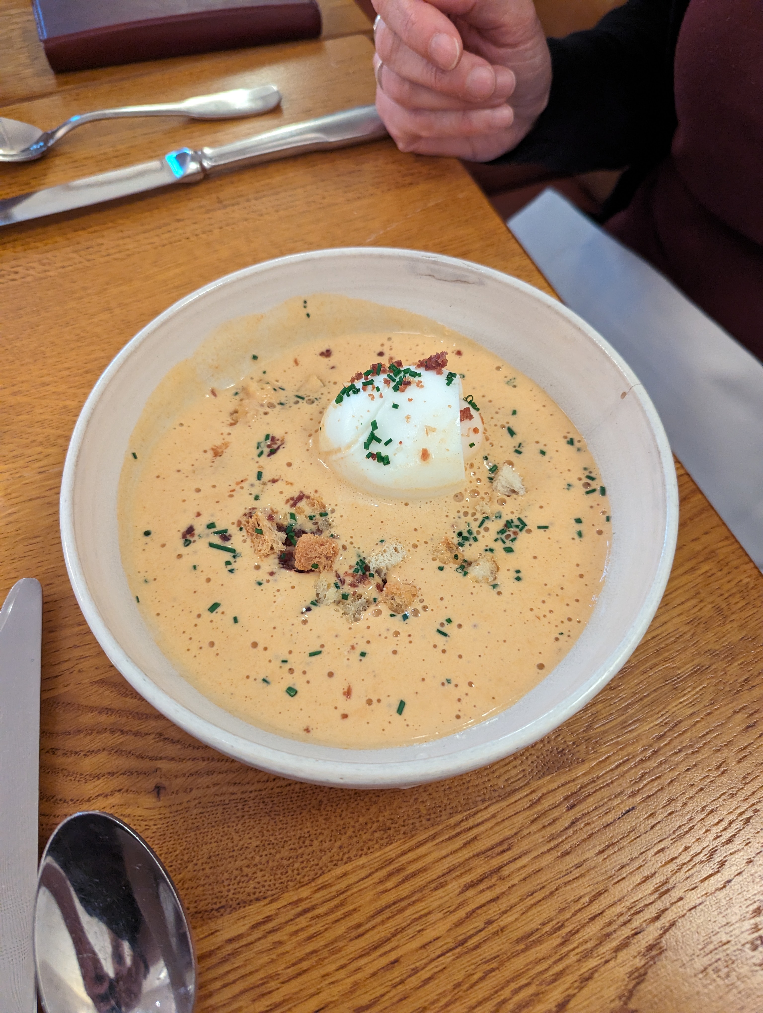 Super expérience avec des jolis plats élaborés et gouteux ! L'oeuf bio mousse de chorizo était vraiment excellent, les ravioles aux écrevisses une tuerie et les oeufs à la neige en dessert au top aussi ! Un petit bémol sur la volaille servie à peine chaude avec la sauce qui figeait dans l'assiette et la purée un peu décevante. Arrivez de bonne heure si vous souhaitez être en terrasse mais attention les tables sont vraiment très petites pas super pratique... Les serveurs sont très sympas c'est vraiment agréable ! Bref une bonne adresse !