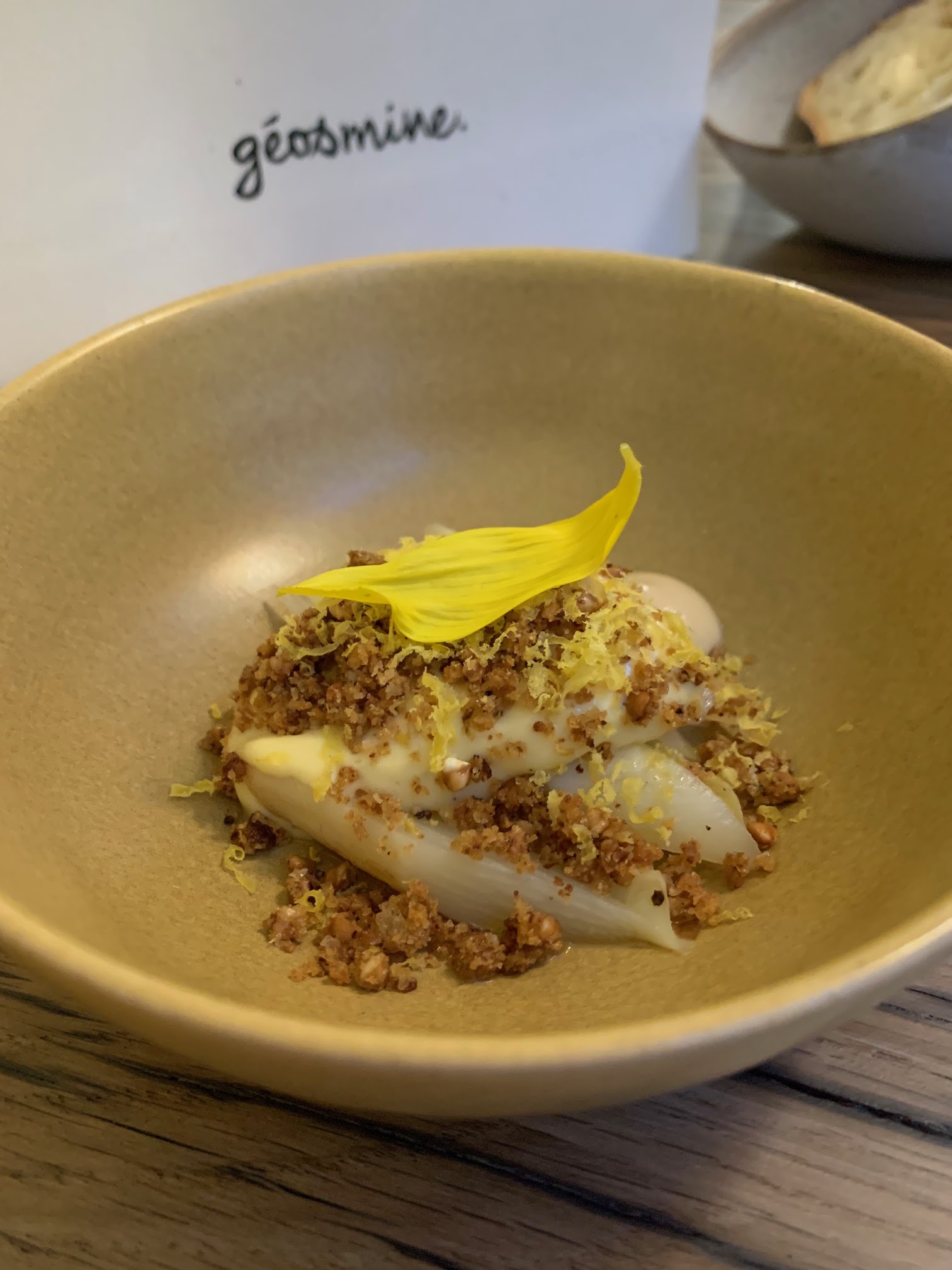 Etoilé absolument obligée pour Geosmine dès février prochain. Pas possible autrement tant tout est d'un incroyable niveau. Les plats, le visuel, l'originalité des saveurs (cordifole, pissenlit, trévise fumée...), la carte des vins, le service pro et cool... Maxime Bouttier fait partie de la génération des Omar Dhiab et Mallory Gabsi qui nous font plaisir en se faisant plaisir et qui réinvente la cuisine