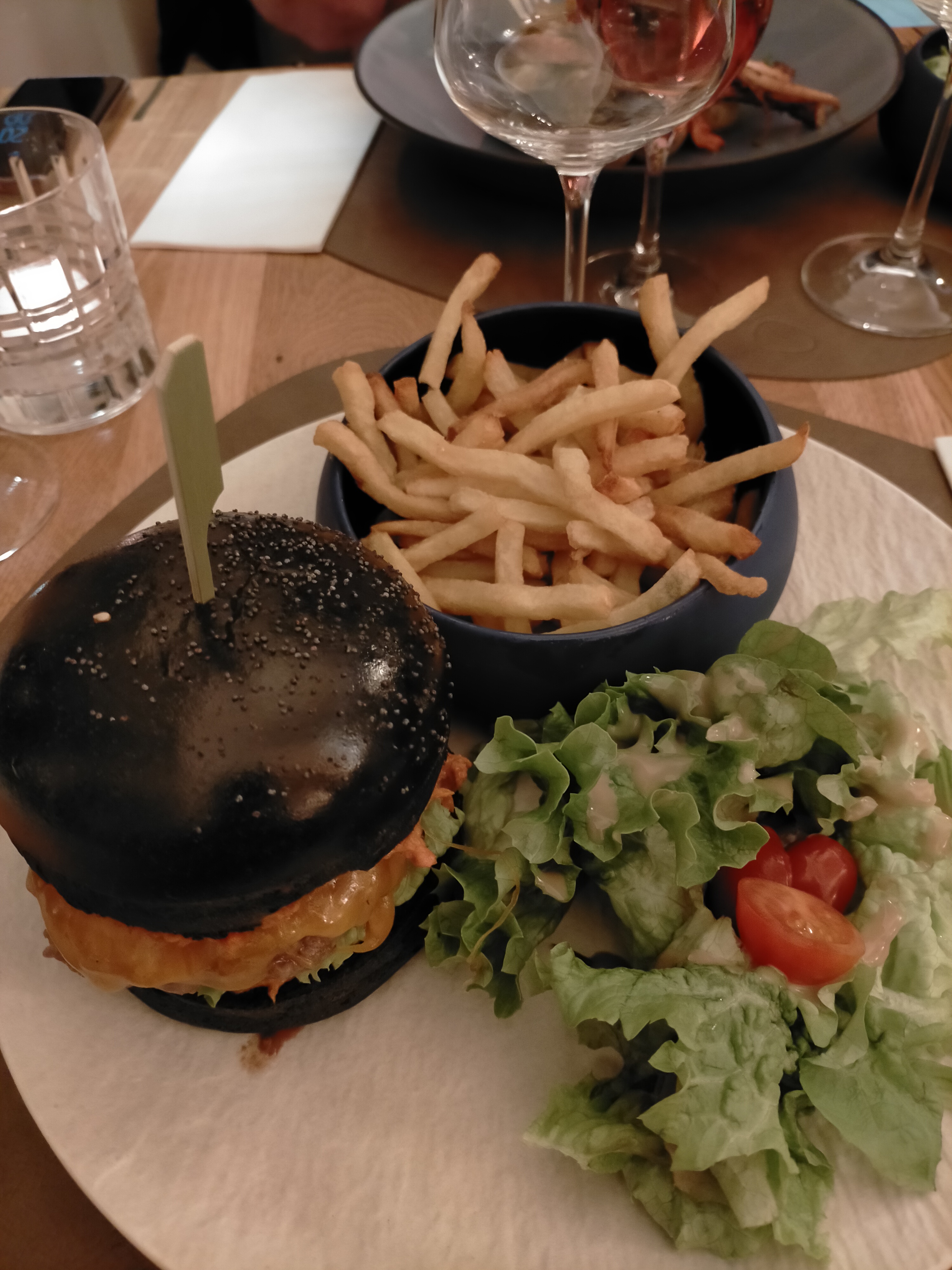 Nous nous sommes régalés avec les incontournables (Black Burger, entrecôte, cheesecake et mi-cuit chocolat). Bon rapport qualité / prix. Personnel très agréable. Seul petit bémol : pas assez de chauffage dans le resto.