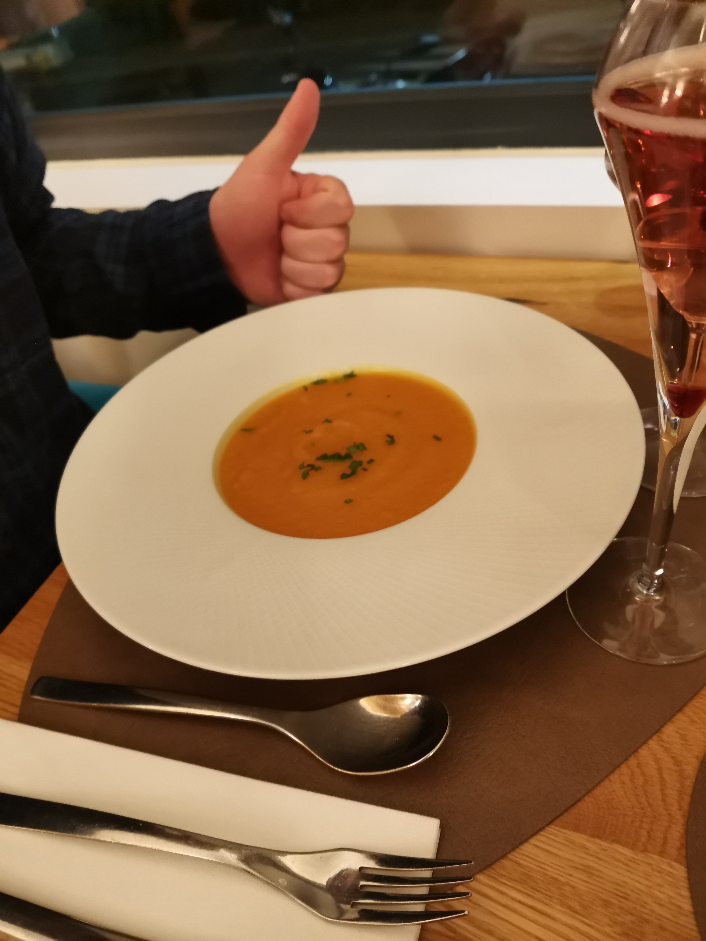 Le cadre est très agréable, la déco moderne. Nous n'avons pas pub rester la terrasse, mais reviendrons au printemps avec plaisir. Le service impeccable, rapide, aimable, la serveuse était très sympathique. Très peu d'attente pour les plats. Tout était délicieux. La soupe de potiron parfaitement relevée, avec son oeuf poché les gambas à l'ail nickel. La canette et la souris d'agneau à la cuisson parfaite... Et les desserts délicieux. Quant aux vins ils était très bien. Bref une réussite. Merci pour cet agréable moment. Nous reviendrons.