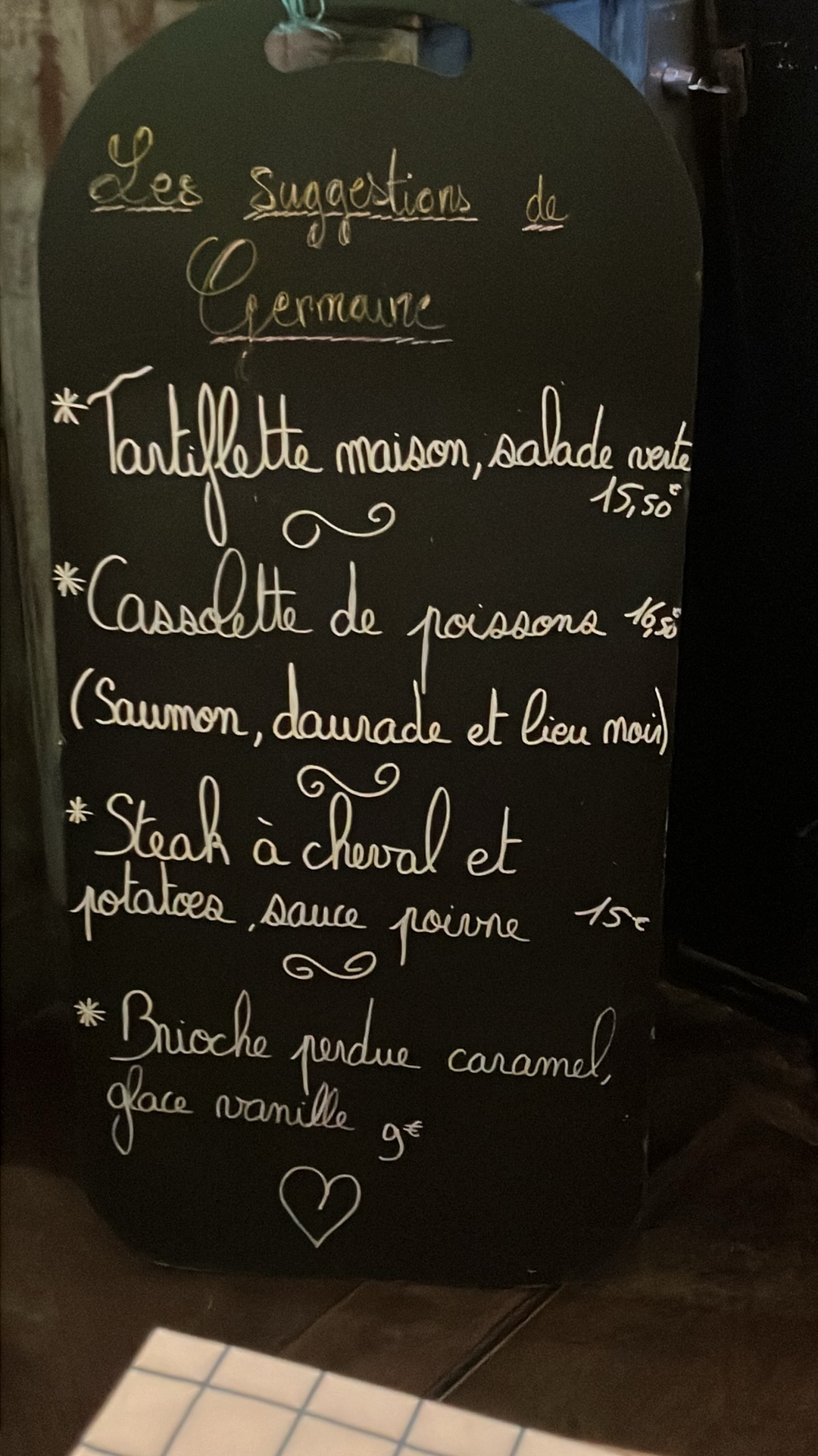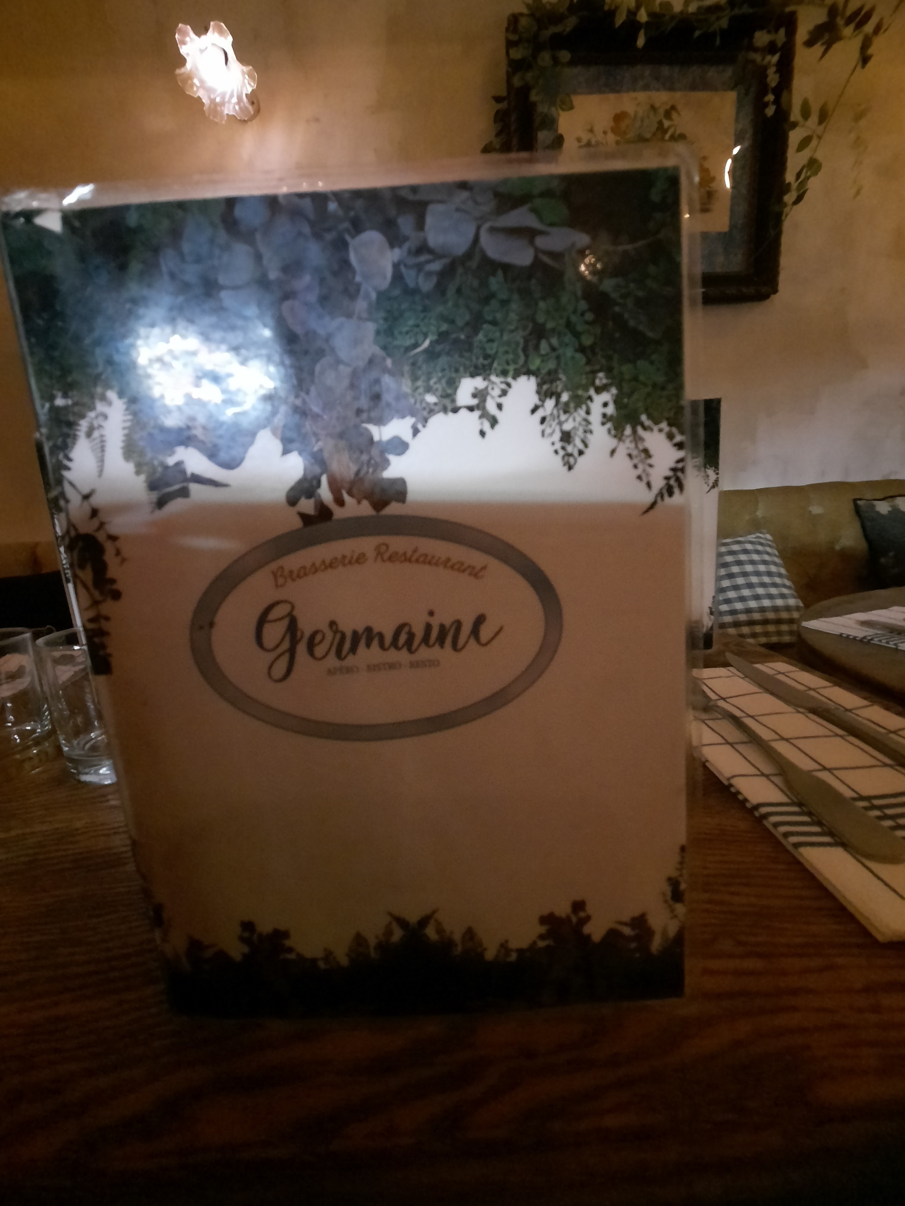 Une soirée géniale hier soir chez Germaine ! On a erré un bon moment avant de choisir ce resto, et franchement, une réussite : petite table pour 2 au calme, un accueil d’une qualité rare, grâce à Orlane, merci encore à elle ! Le commentaire précédent est très juste : une perle ! Et des plats délicieux … Je recommande !