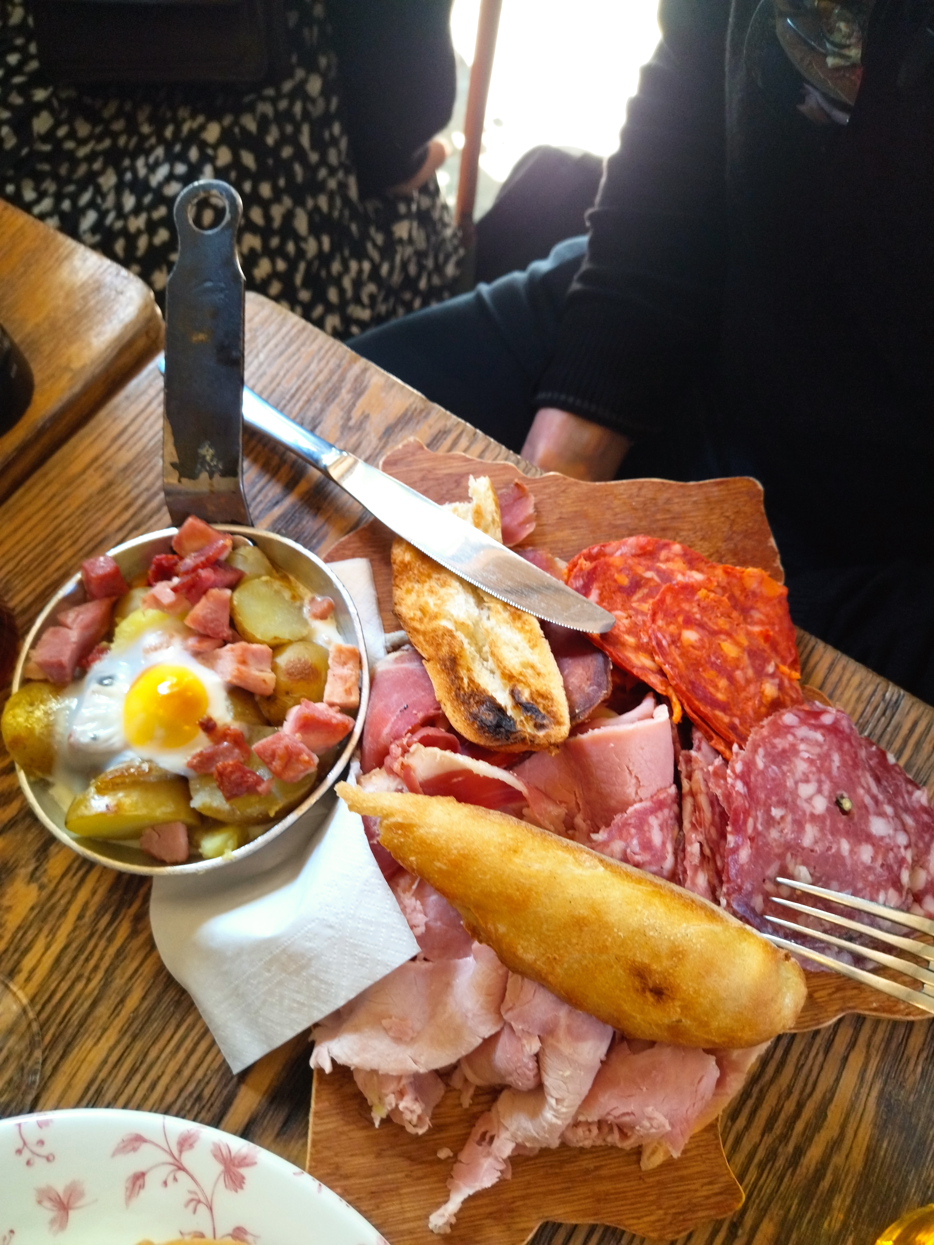 Bel endroit, terrasse isolée du vent et avec des braseros et plaids. On s'y est installés et y sommes restés plus longtemps que prévu car c'était génial : plats très savoureux, boissons sympas. Seul le chocolat chaud manquait d'onctuosité. J'y retournerai avec un plus grand plaisir.