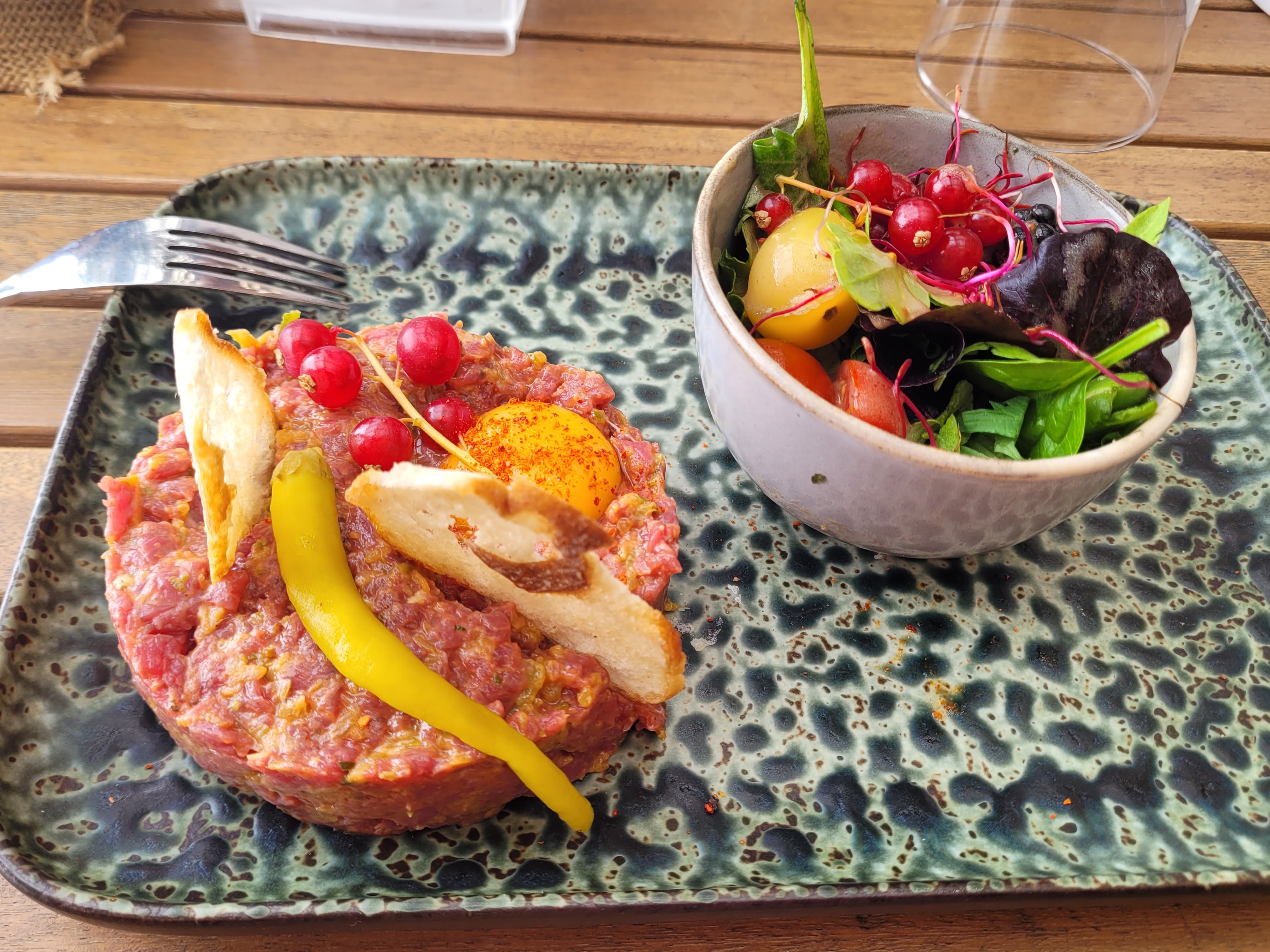 On a pris la salade Paolina mais le poulet était sec et trop cuit ! Le tartare de bœuf il est déjà préparée ! Je préfère quand il est pas préparé d’avance !