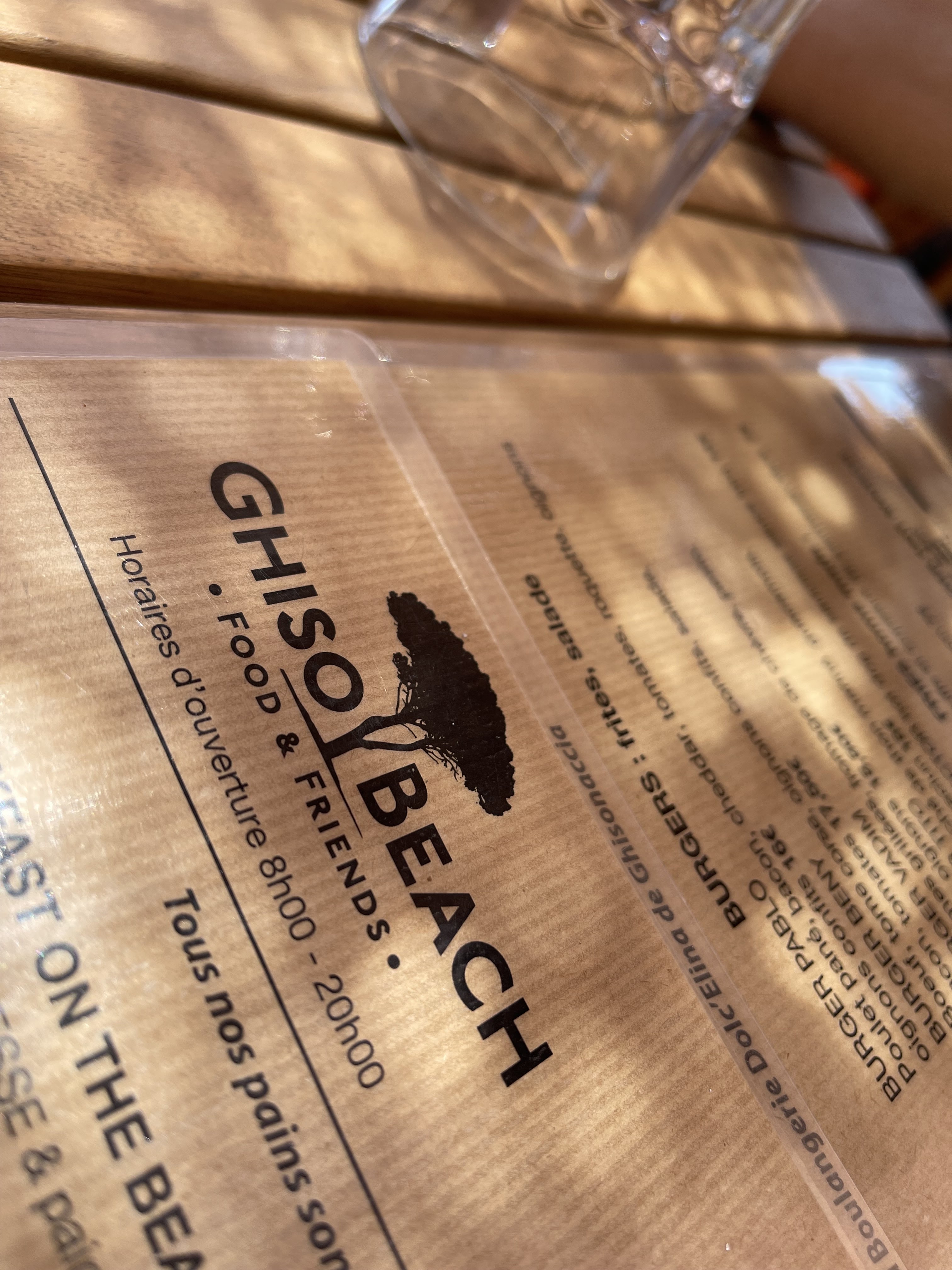 En séjour à Marina d’Oru , nous avons eu le plaisir de découvrir le «Ghiso Beach ». Le cadre est magnifique, la décoration de très bon goût et la vue exceptionnelle. Le patron vous accueil avec gentillesse et simplicité. Le personnel, du Cantal, de hollande où de Corse est courtois, attentif et disponible. La carte du déjeuner est très adaptée à un repas en bord de plage, les produits sont de qualité et la cuisine gourmande. Les prix sont raisonnables. Merci d’avoir ensoleillé notre séjour.