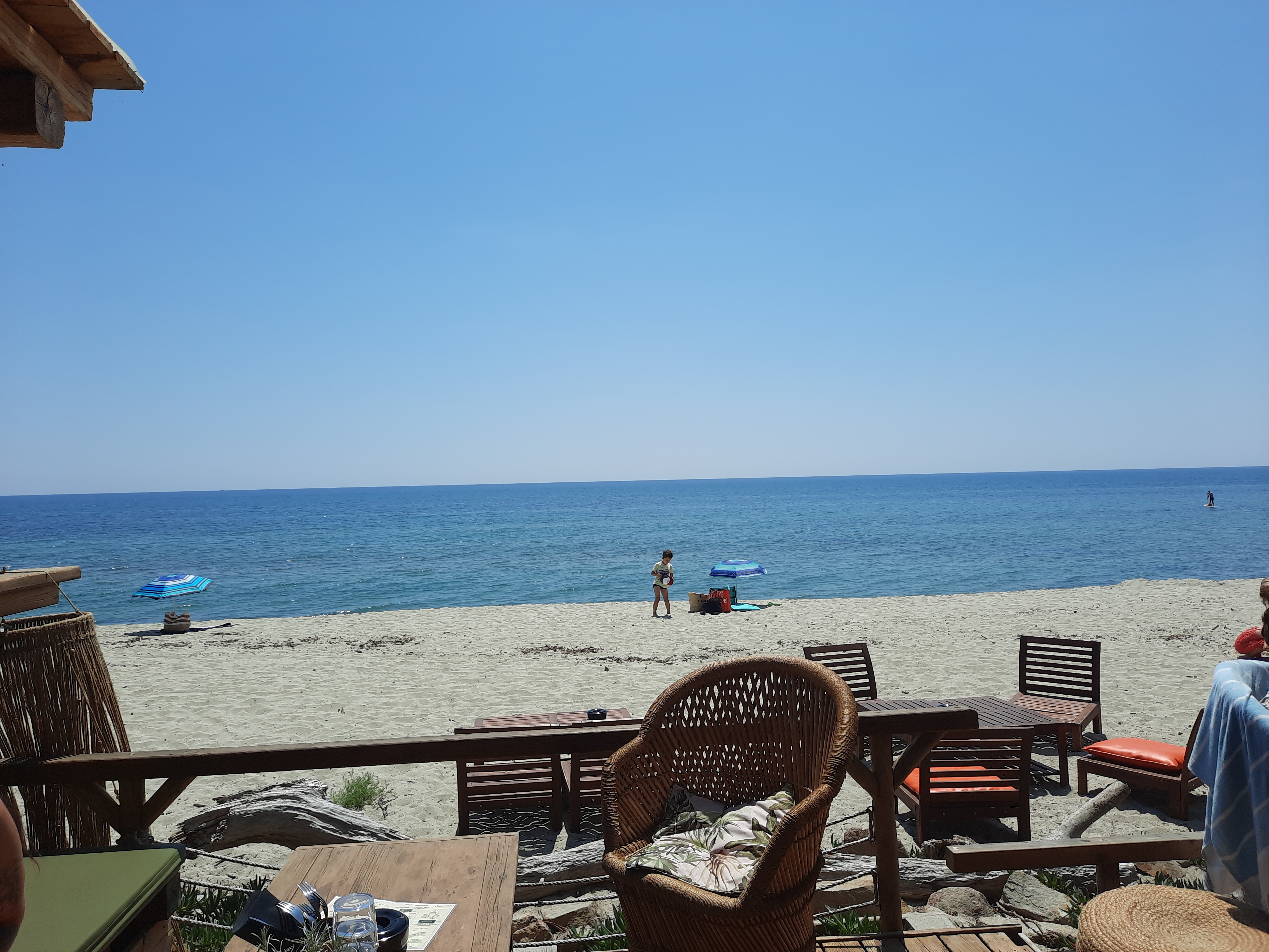 Paillote somptueuse décorée avec goût. Une évasion totale dans un lieu cosy où l'on peut se détendre face à la grande bleue et devant les aiguilles de Bavella en fond de tableau. La cuisine est excellente, je me suis régalé avec un tartare de thon. Les frites sont un régal et faites maison. Le personnel toujours souriant est à votre écoute. Fred le patron et sa compagne sont d'une grande gentillesse, toujours le sourire et aux soins des clients. Je recommande vivement ce petit coin de paradis.