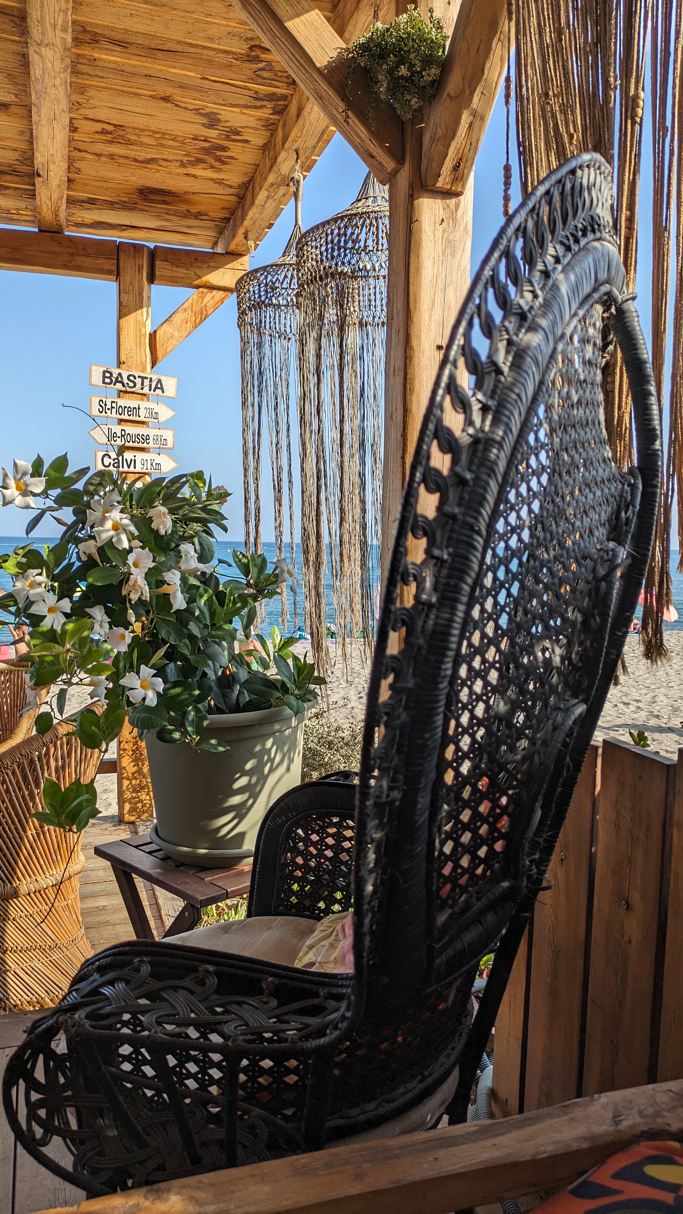 Magnifique nouveau coin superbe déco directement sur la plage, patron et employés très sympas, grands choix de cocktails et divers plats sans oublier les vins corses. Très bon choix musical , on se sent vraiment en détente face à la mer