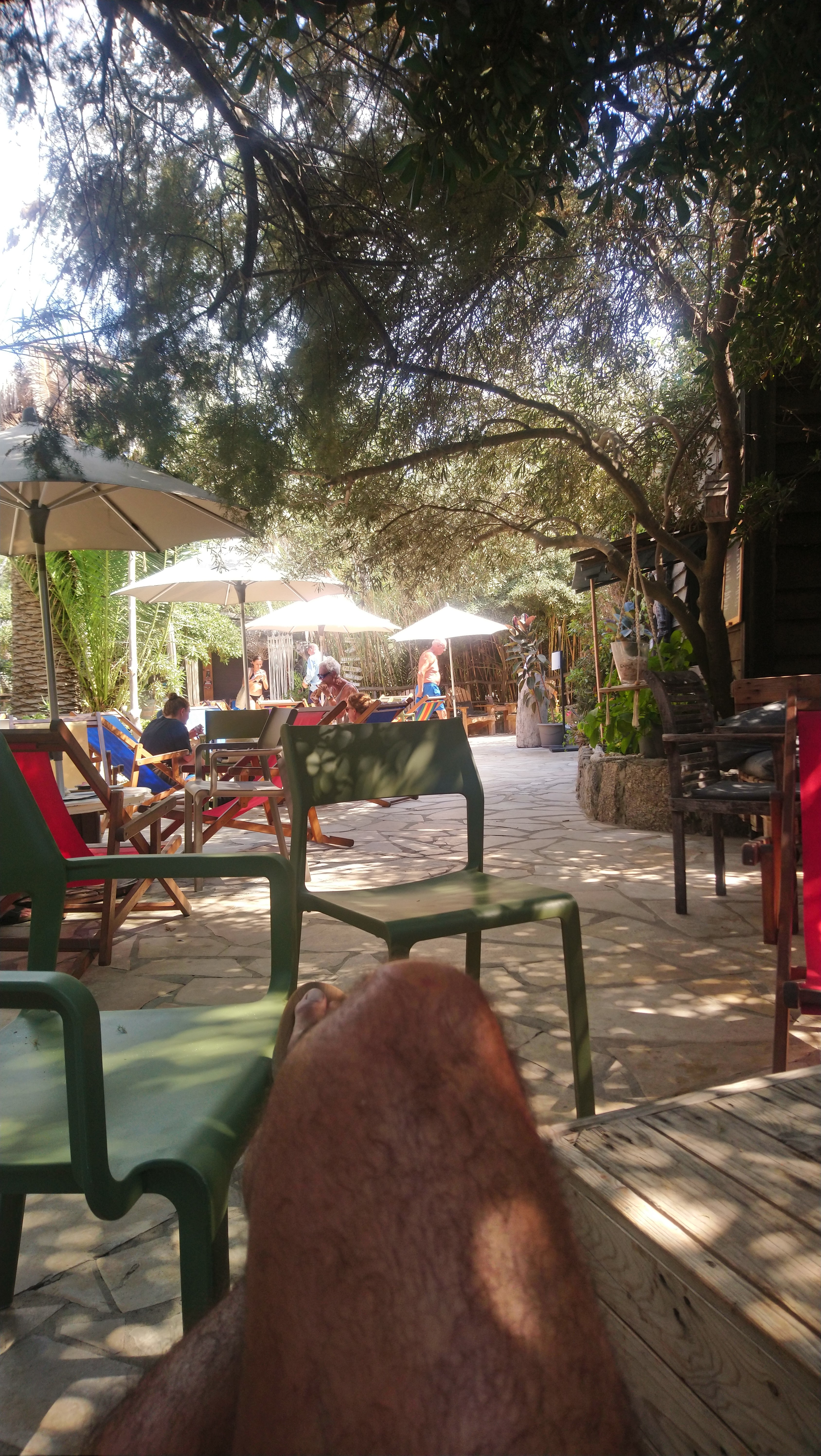 Bon accueil, immense terrasse ombragée donnant sur la magnifique plage du même nom. Le paradis pour une journée de plage et de farniente.