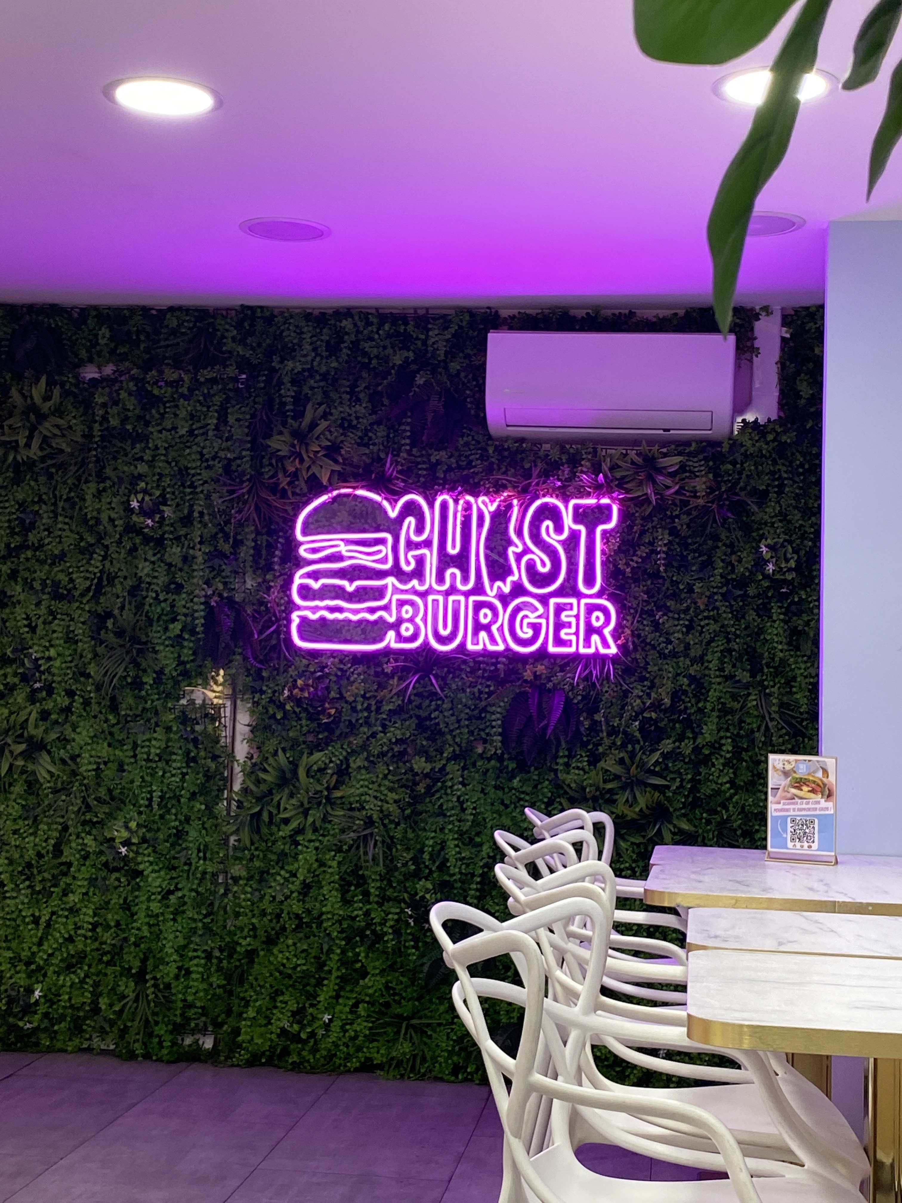 1ere fois dans ce fast food à la décoration moderne et cosy avec son mur végétal et qui dispose de 2 salles. Une fois la commande passée sur la seule borne disponible, l'attente n'était pas longue car nous étions les premières arrivées. La carte resto n'est pas acceptée sur la borne ce qui a obligé 2 personnes à régler au comptoir. Il y a eu une erreur sur une des commandes reçues et payées au comptoir (mauvais sandwich) mais faute de temps nous n'avons pas fait la réclamation. Les prix sont assez élevés pour des burgers (15,40 le menu ghost burger au chicken avec frites patates douces). Le repas était très bon.