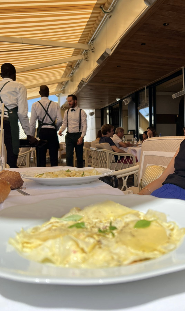 Le cadre est super, l’ambiance au top, les serveurs réactifs ( on s’y attend vu les prix), mais on ne vient pas ici pour de la grande cuisine on paye surtout le cadre (pizza reste très correct) Mais j’ai pris les pâtes vongole je ne recommande pas vu le prix on pourrait s’attendre à mieux