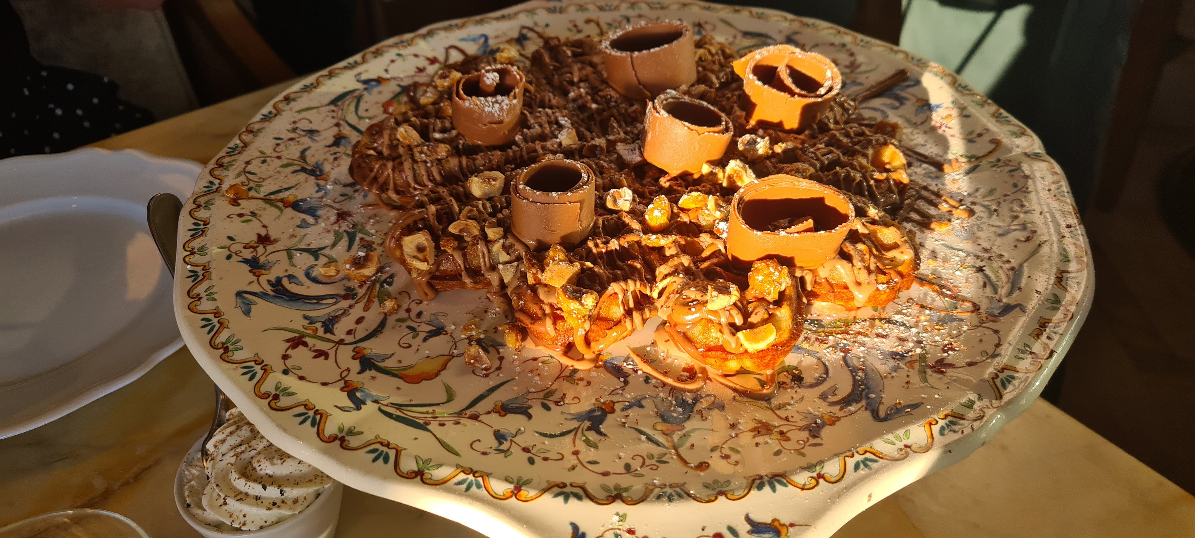 C’est pour le lieu et le live show qu’on vient, la cuisine est juste indécente. Évitez les spaghettini à la truffe (de la crème fraîche collante saupoudrée de truffe d’été) et évitez de demander des photos, la serveuse aux cheveux bouclés blonds vous répondra : «Quand j’aurai le temps».