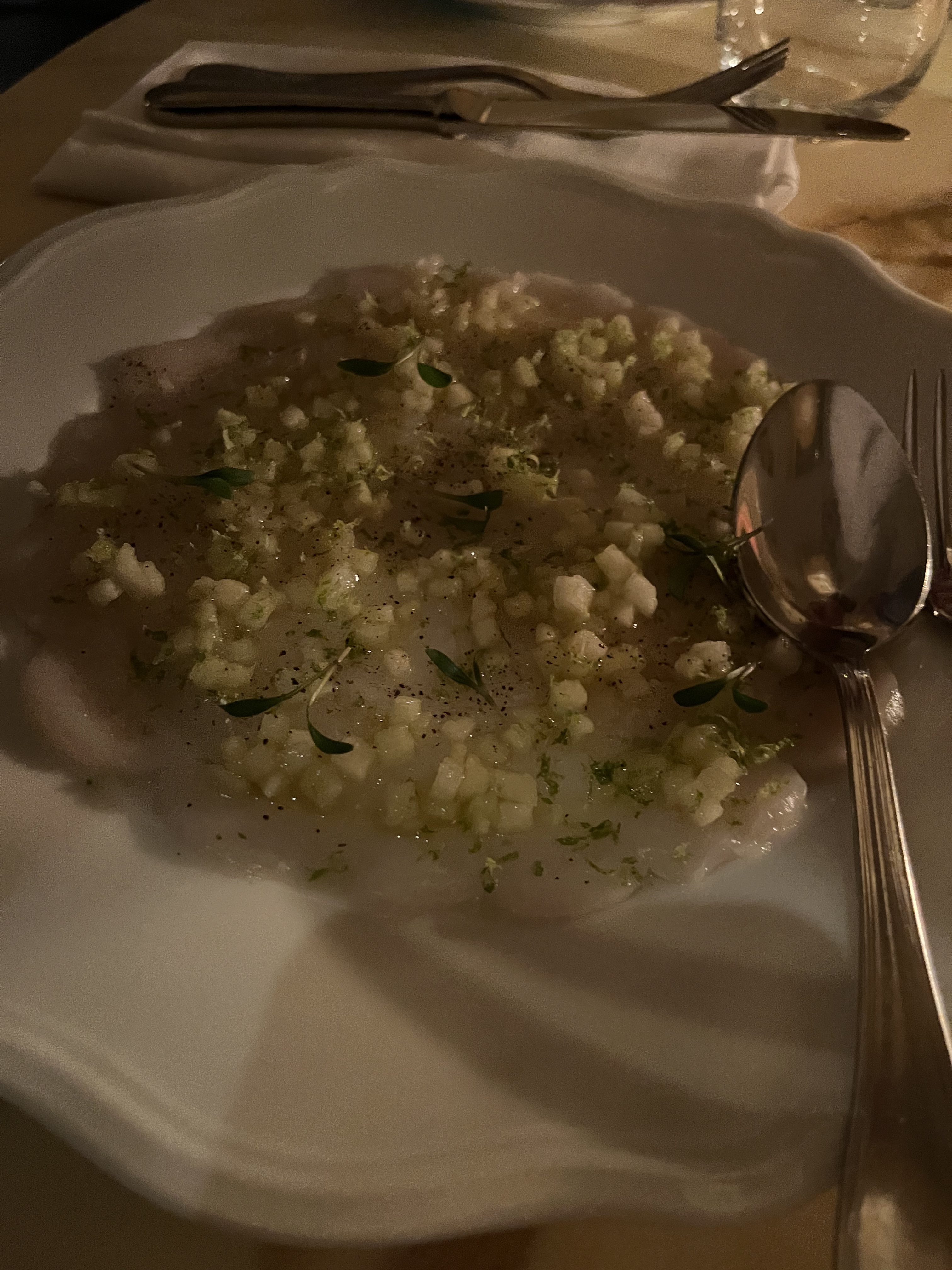 Le carpaccio de saint Jacques pommes 🍏 top sur cette belle terrasse ☀️