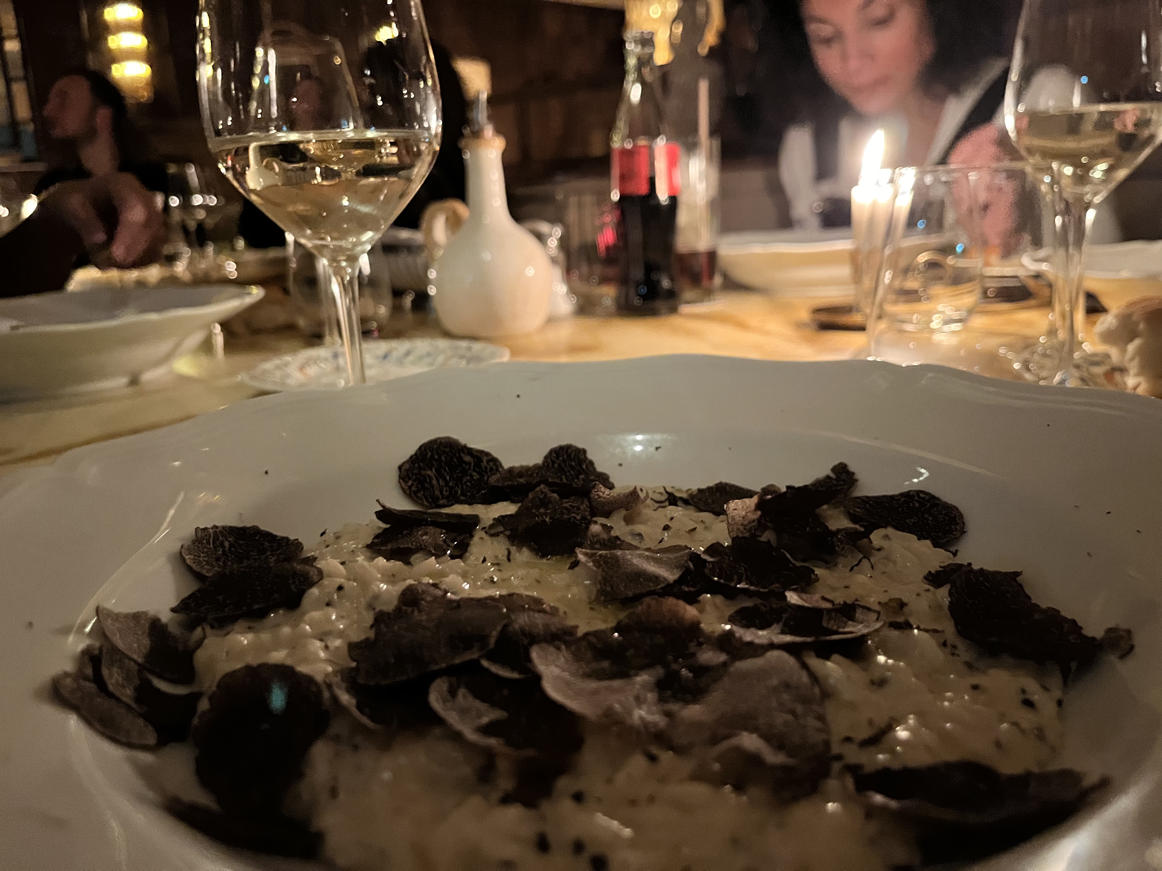 Bel établissement, avec une magnifique vue. Les pâtes à la truffe sont excellentes, la pizza à la truffe également. Néanmoins, les entrées ont été débarrassées avant que nous ayons eu le temps de finir… Et le serveur n’a pas esquissé un sourire ou un mot agréable de toute la soirée, dommage !