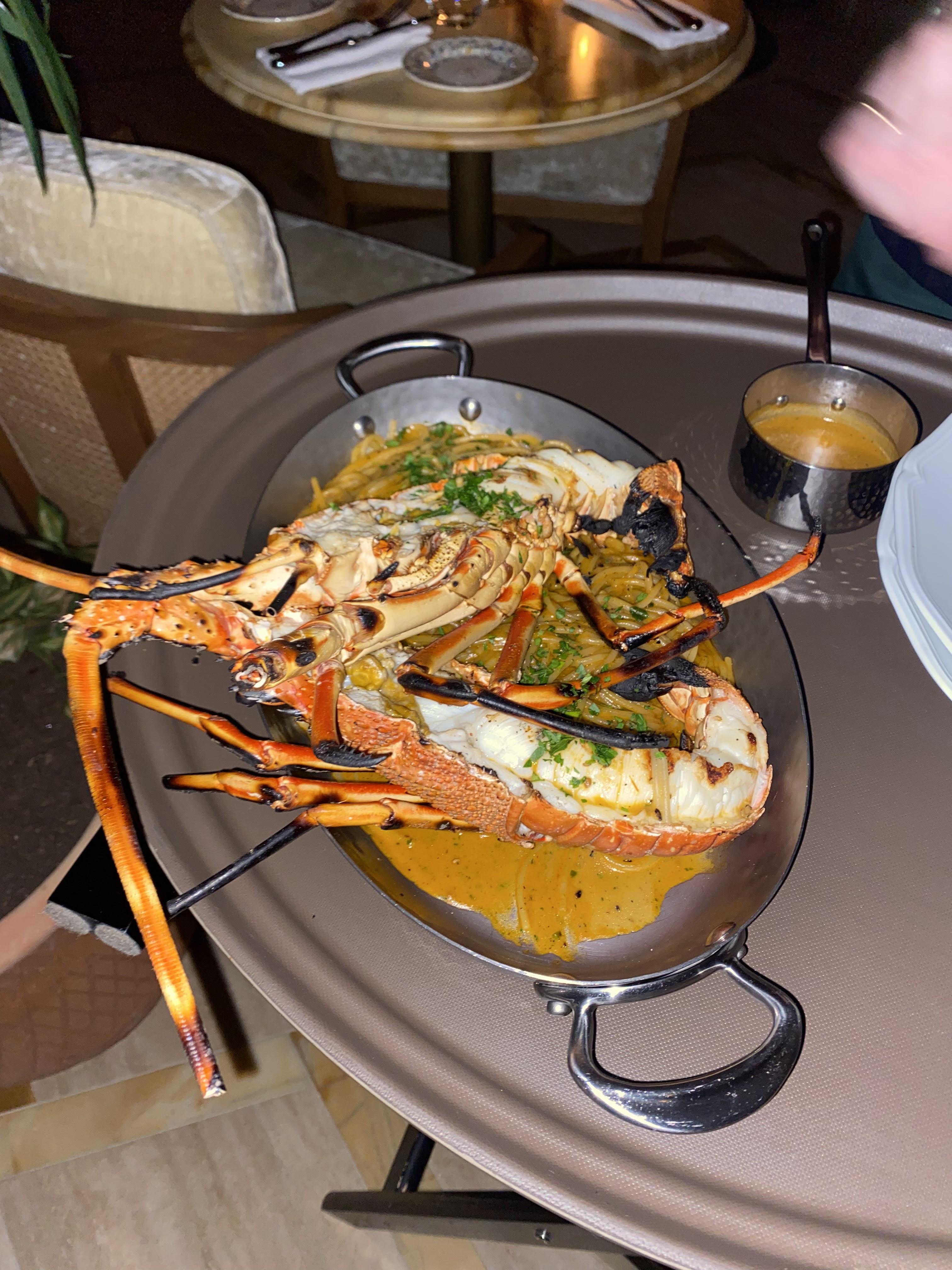 Très déçu, je m’attendais a des plats savoureux mais loin d’être le cas… ATTENTION Lorsque vous choisissez de prendre des spaghettis langoustes à partager pour 2 ; sur la carte c’est indiqué 100gr - 42€ or ce plat est accompagné d’un homard entier et cela vous revient a 340€… Nous nous sommes retrouvés avec des plats pour 4 or que nous étions 2. Il s’agirait de bien former le personnel. Une personne de bonne foi aurait pu nous faire éviter une telle situation. Le cocktail vraiment pas bon… Une addition de quasiment 500€ pas méritée!