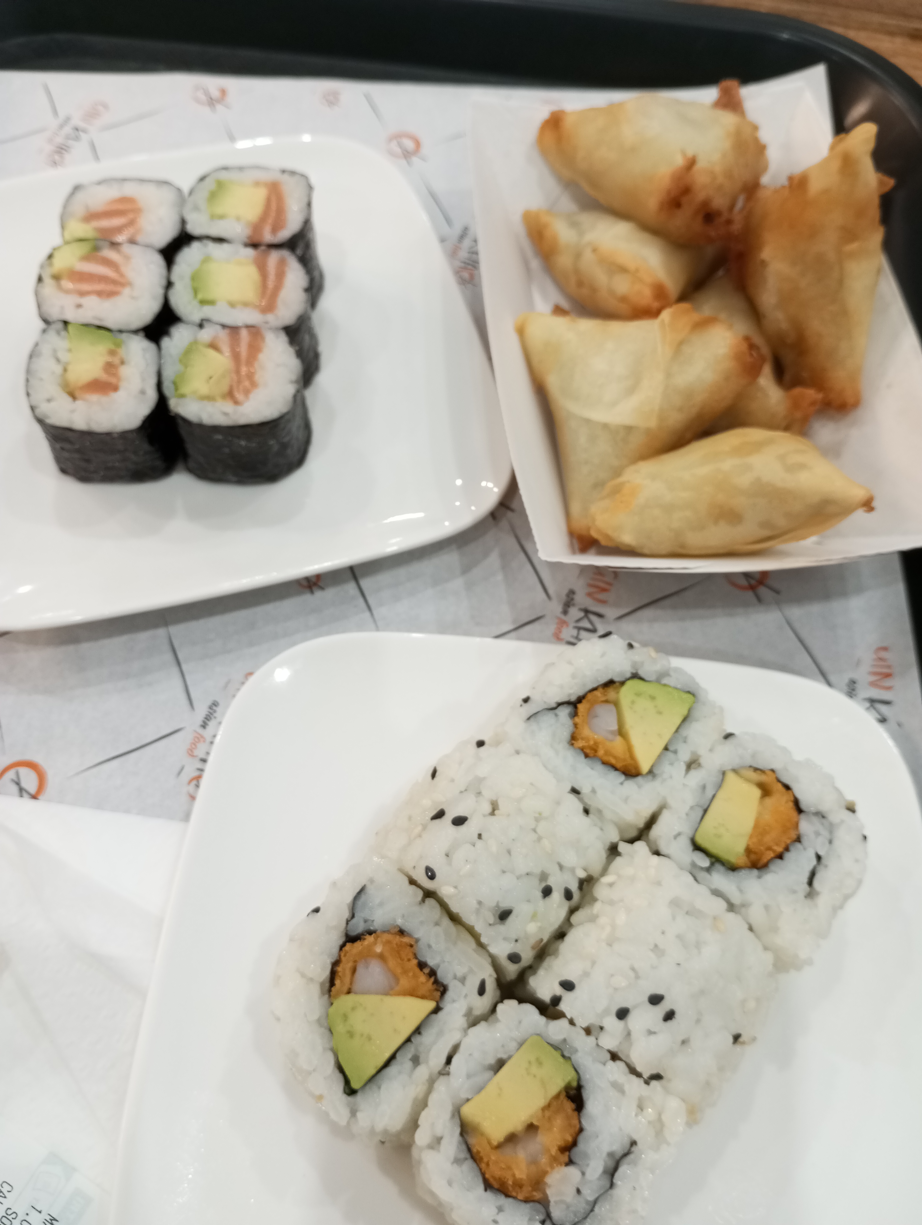 Maki et california très bon, point négatif pour les samboussas qui sont très huileux, brochettes boeufs fromage un peu trop cuites voire grillées, brochettes poulets que je n'ai pas trouvé fidèle au goût caramélisé.