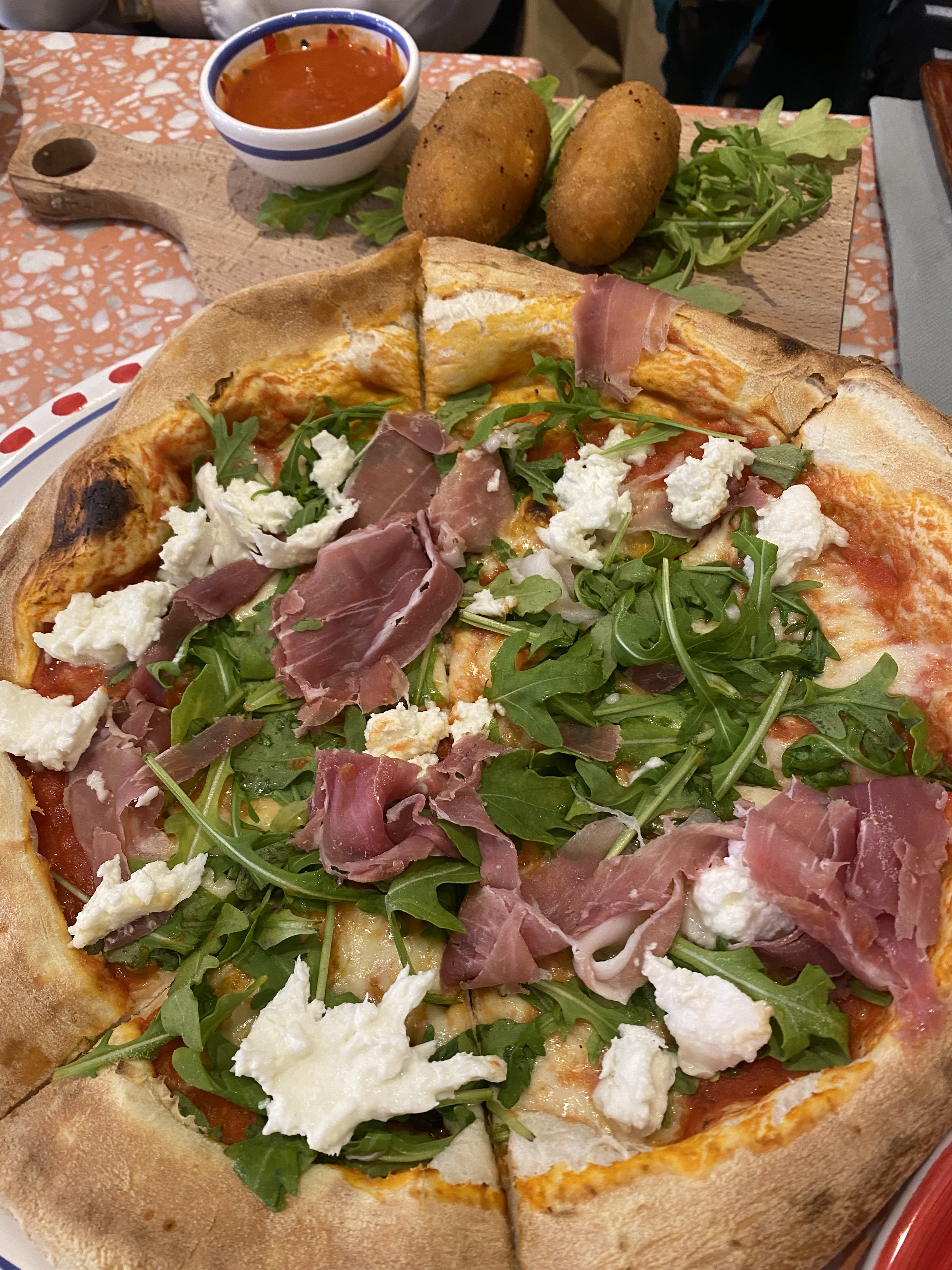 On voyage dans l'assiette ! Du spritz au tiramisue, toutes préparations suivent les recettes traditionnelles pour le meilleur Mention spéciale pour la pâte à pizza / foccacia légère et moelleuse Le lieu est (trop) instagramable, ça passe ou ça casse Préférez réserver une table pour être sûr de la disponibilité