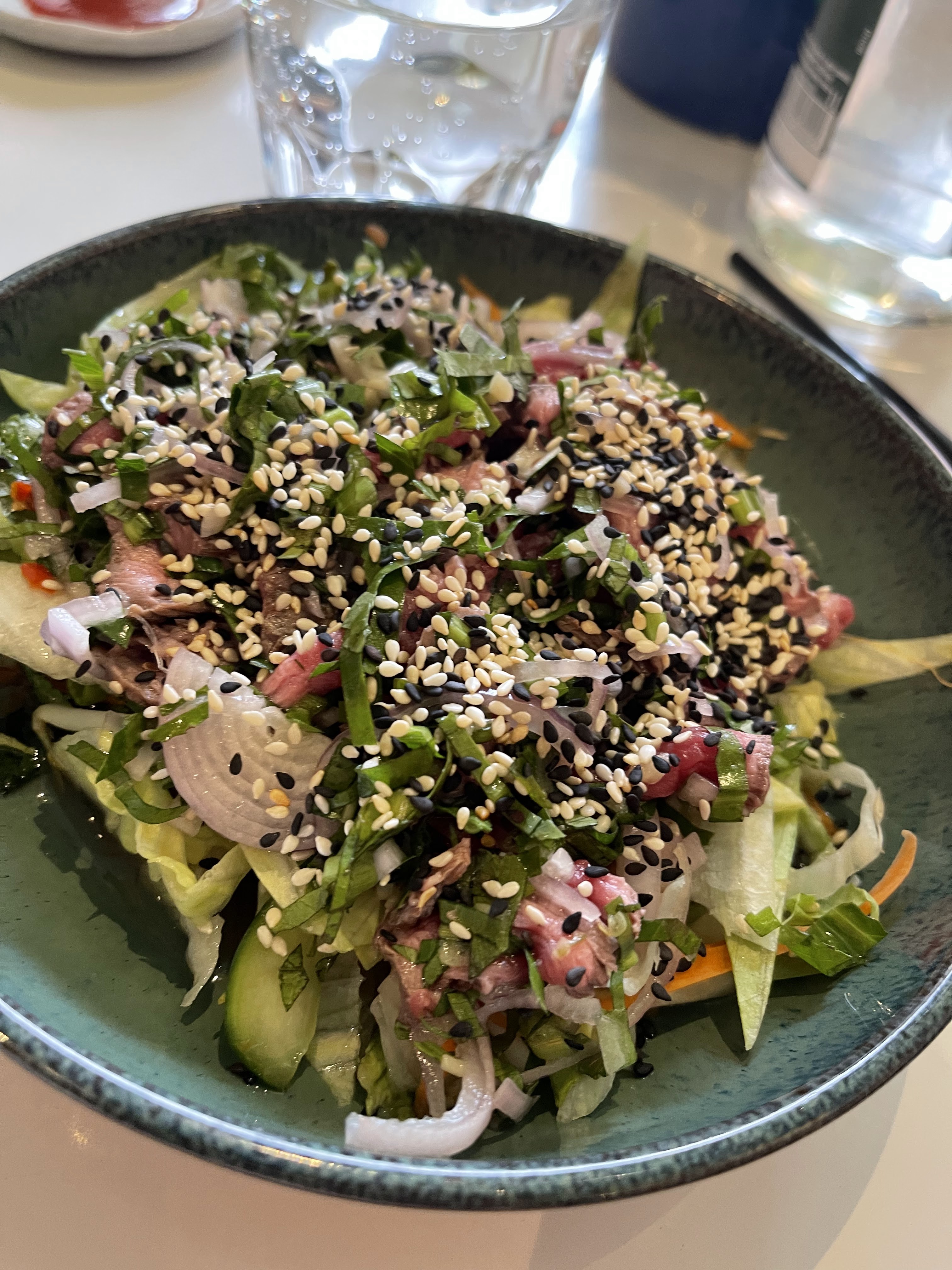 Petite pépite découverte par hasard au détour d'une rue - la devanture cosy avec toutes les plantes et les guirlandes nous ont attirées, et on n'a pas été déçues : les excellents rouleaux de printemps, la soupe aux raviolis incroyable et le tiramisu à la mangue absolument renversant, le tout sublimé par le personnel adorable - bref, je recommande sans hésitation ❤️