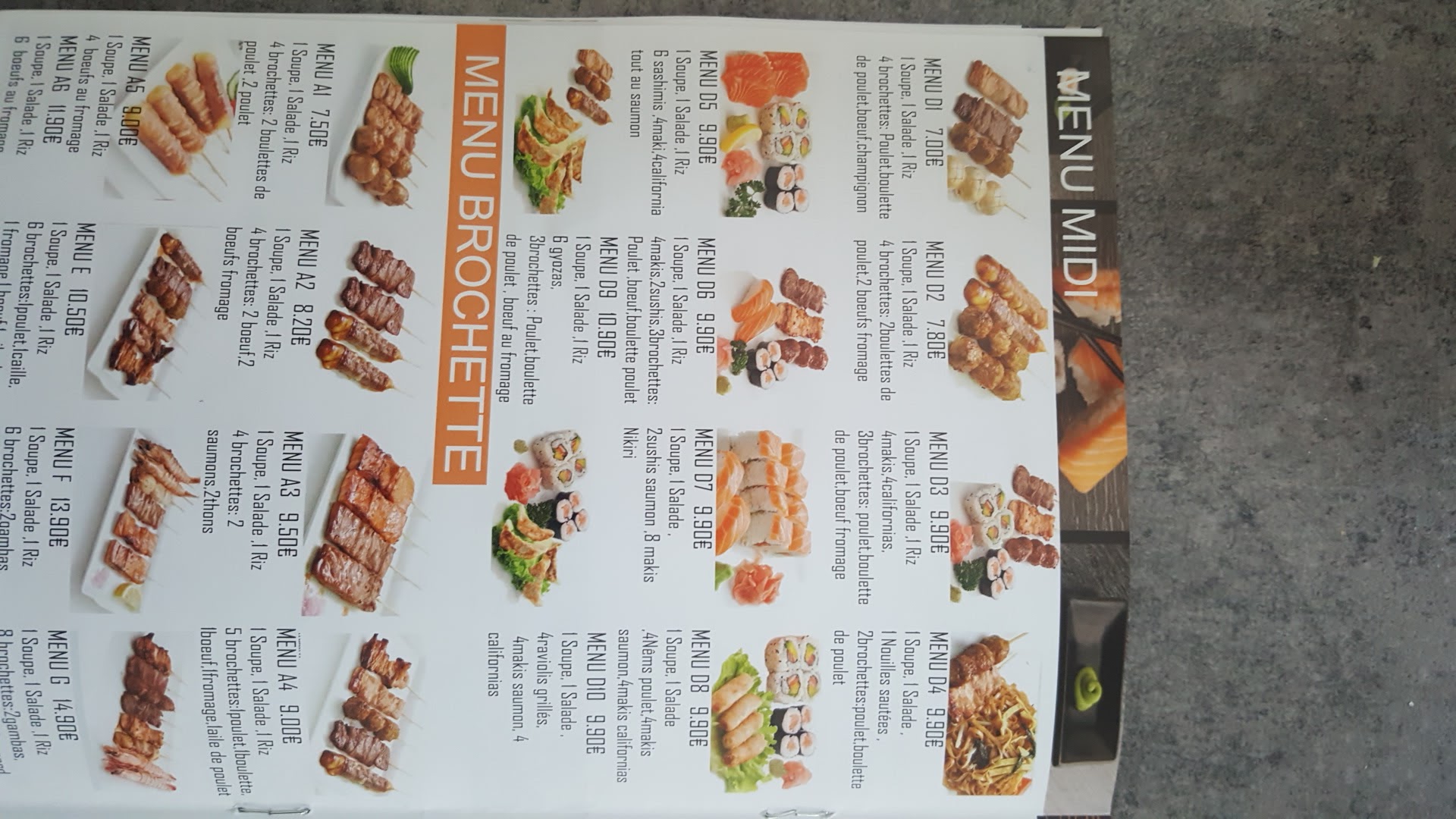 Tres decu adepte de japonais depuis des annees on a testé avec mon conjoint pour la saint Valentin Il manquait une soupe Sauce donné en petite quantité Brochette pas mariné Et le pire Perles de coco congelet donc pas mangé Je ne recommande pas ce japonais