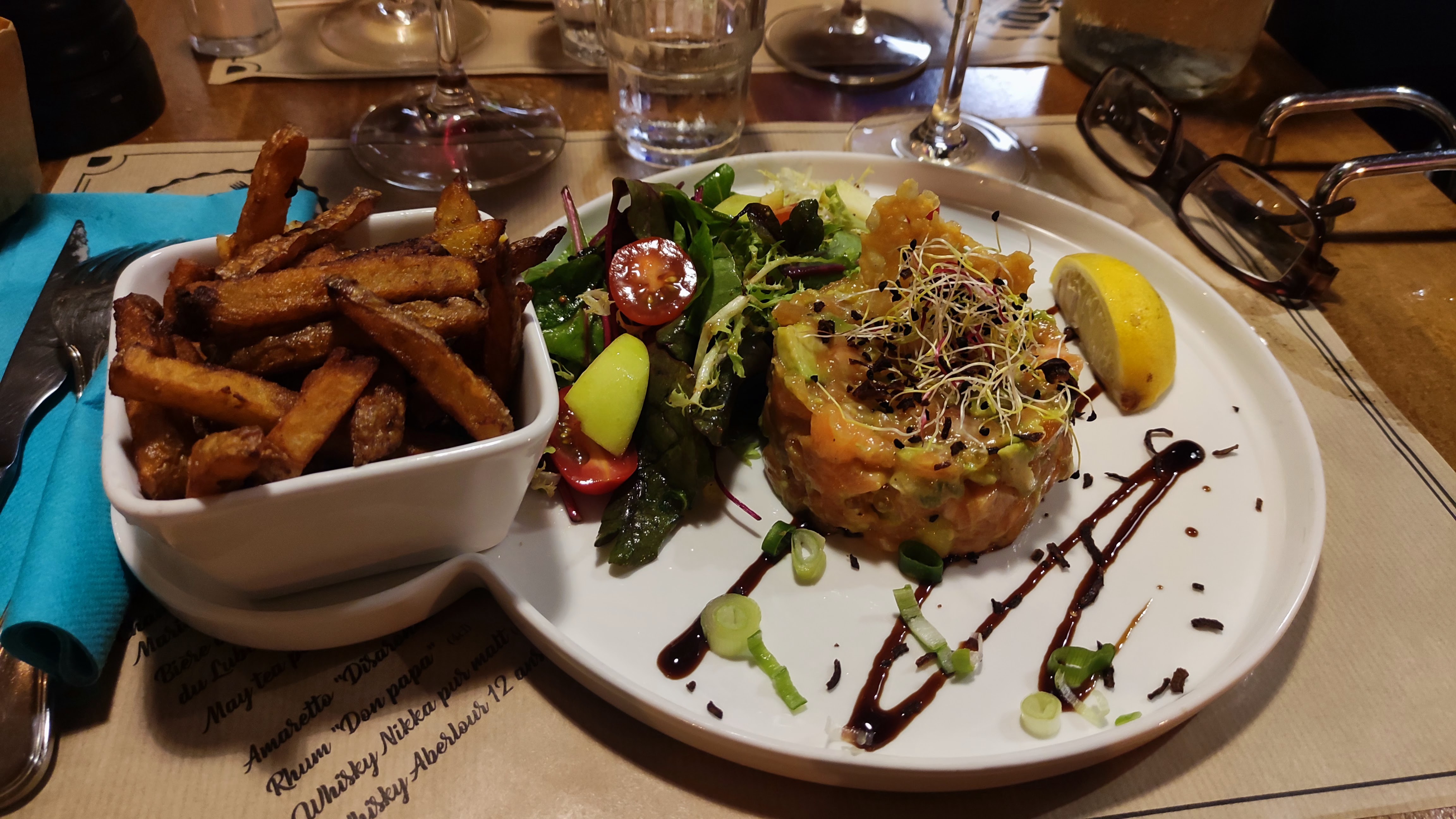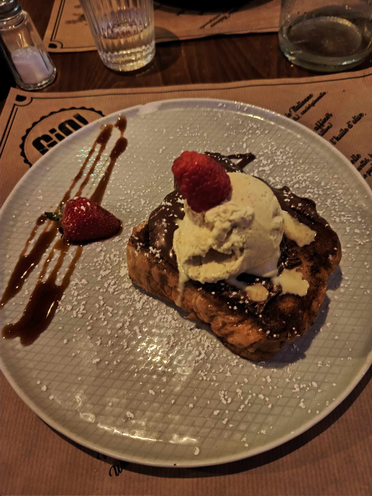 Cadre super sympa, repas ne vaut pas le prix, tiramisu pas bon, service ultra rapide limite stressant. Resto pour faire un repas d'avant soirée mais pas pour un bon repas.