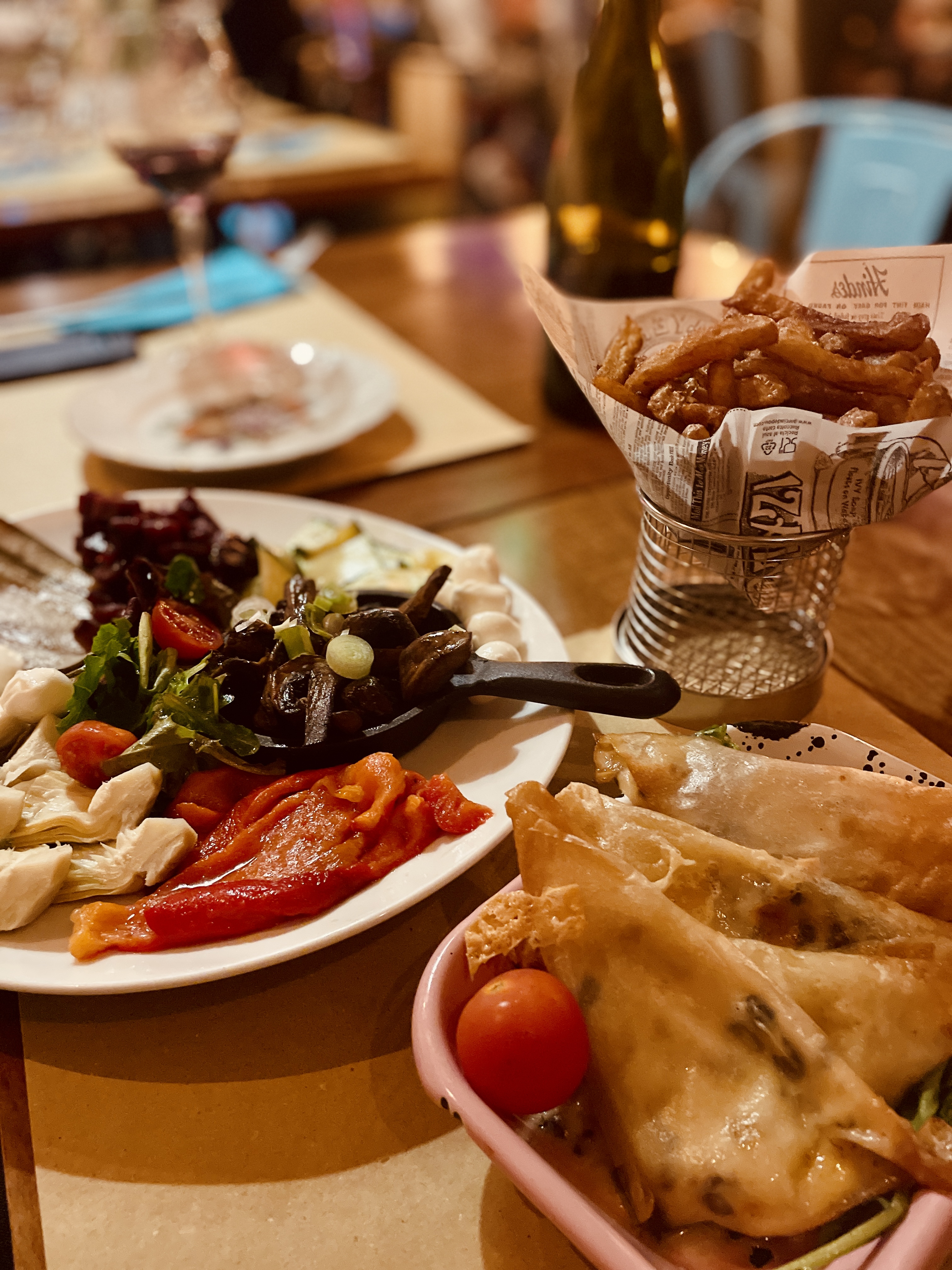 La déco intérieure est très sympa. Seulement la cuisine est assez peu quantitative pour le prix. L'assiette de charcuterie à partager ainsi que celle d'antipasti sont banales. L'assiette de fromage est plus que Light avec des tranches en feuille de papier à cigarette. Les camemberts en chapelure sont bons. Les keftas sont secs et très petits. Les burgers sont bons sans être exceptionnels vu le prix. Les frites sont maison mais molles... Dessert très petits. Profiterole toute petite et qui ne semble pas être un choux maison... Nous étions une dizaine et on a tous été déçu. Ça fait lieu branché donc on surpaye vu les prestations. On paye surtout les serveurs bien habillés type poltronesofa...
