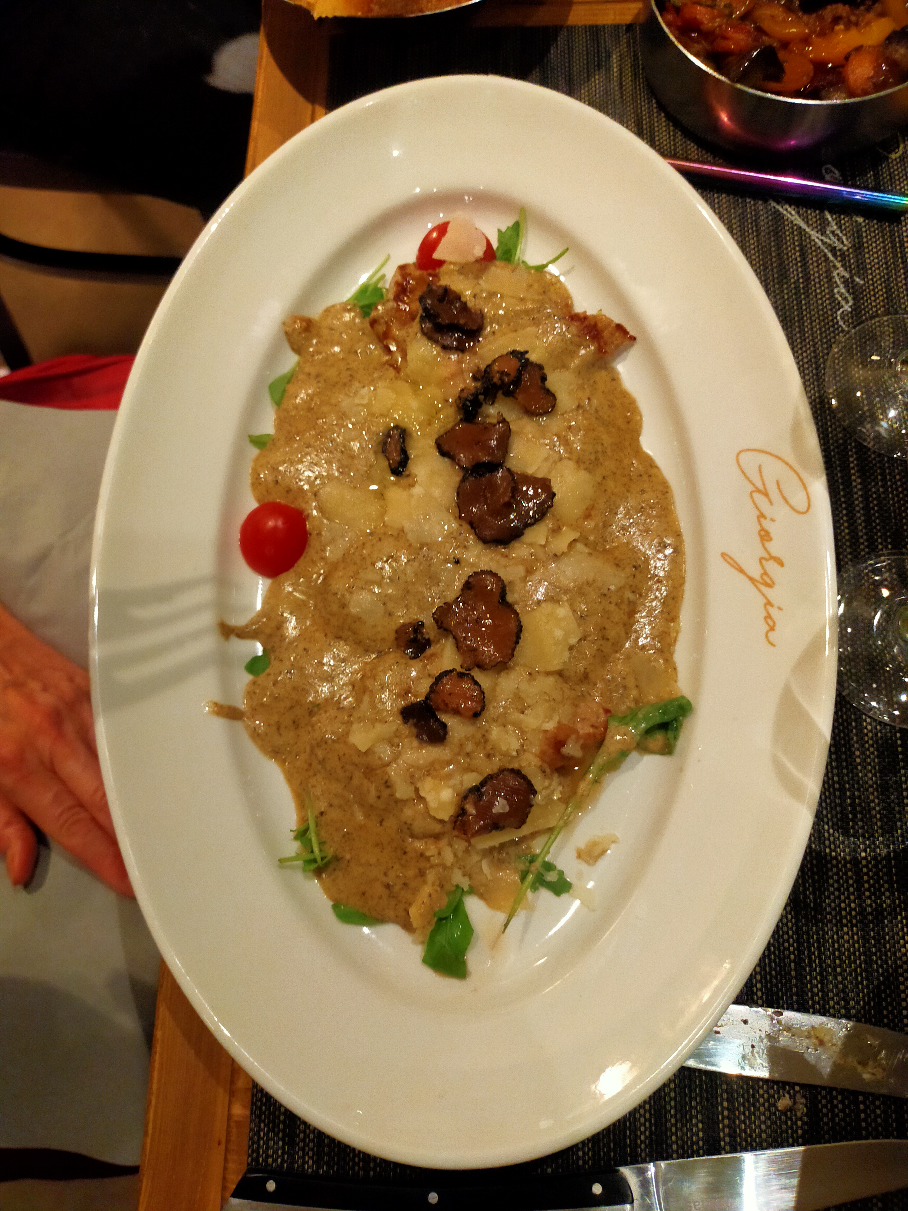 Je suis sorti de là complètement truffé. Je sentais la truffe jusqu'aux oreilles. Il y a tellement de la truffe je ne sais plus où j'en suis. On se demande s'il n'y en a pas dans le tiramisu. Mais qu'est ce que c'est bon. N'emmenez pas votre chien ou votre cochon de compagnie ici, il y ferait une syncope.