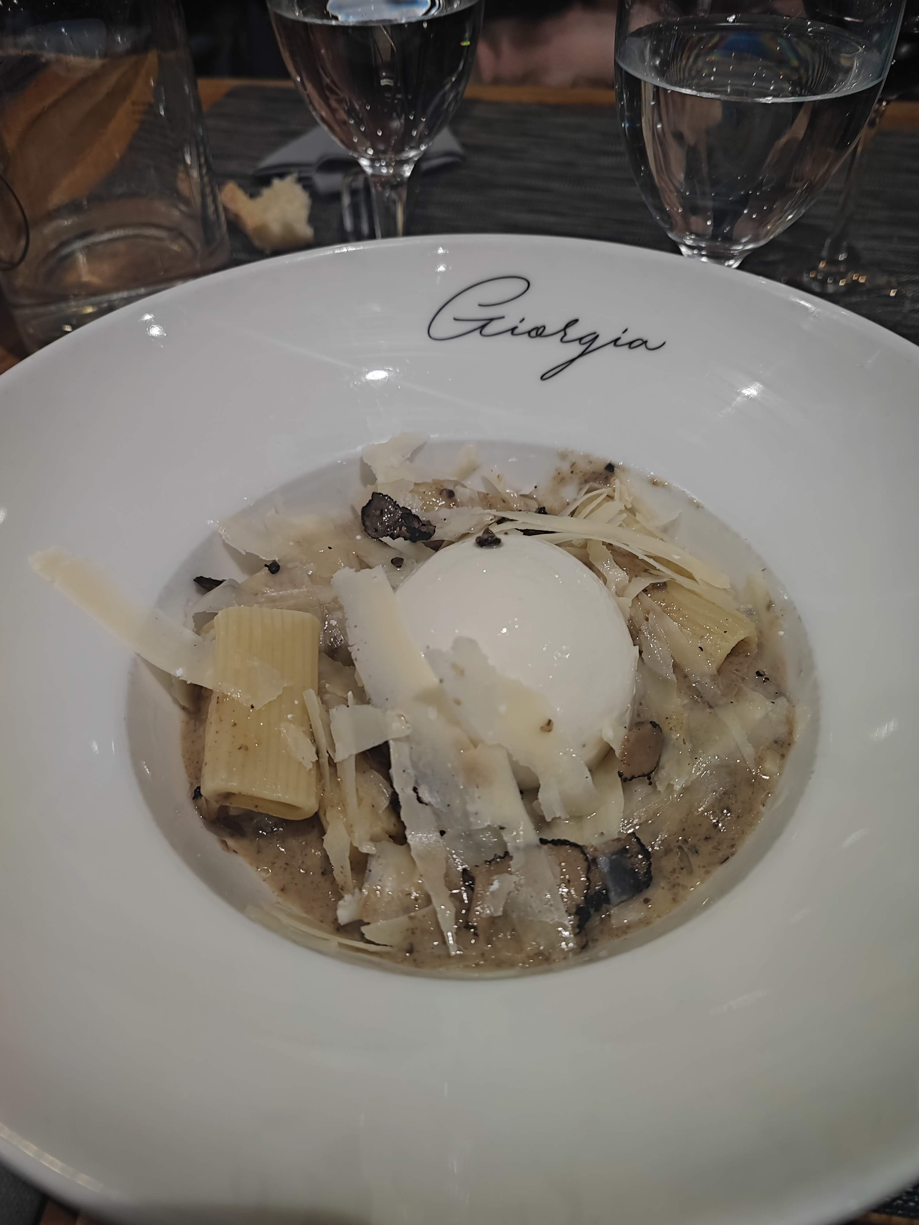 Moment très agréable lors de notre dîner chez Giorgia : plat signature les rigatoni truffes excellentes et copieuses ! Très bon service, merci pour tout