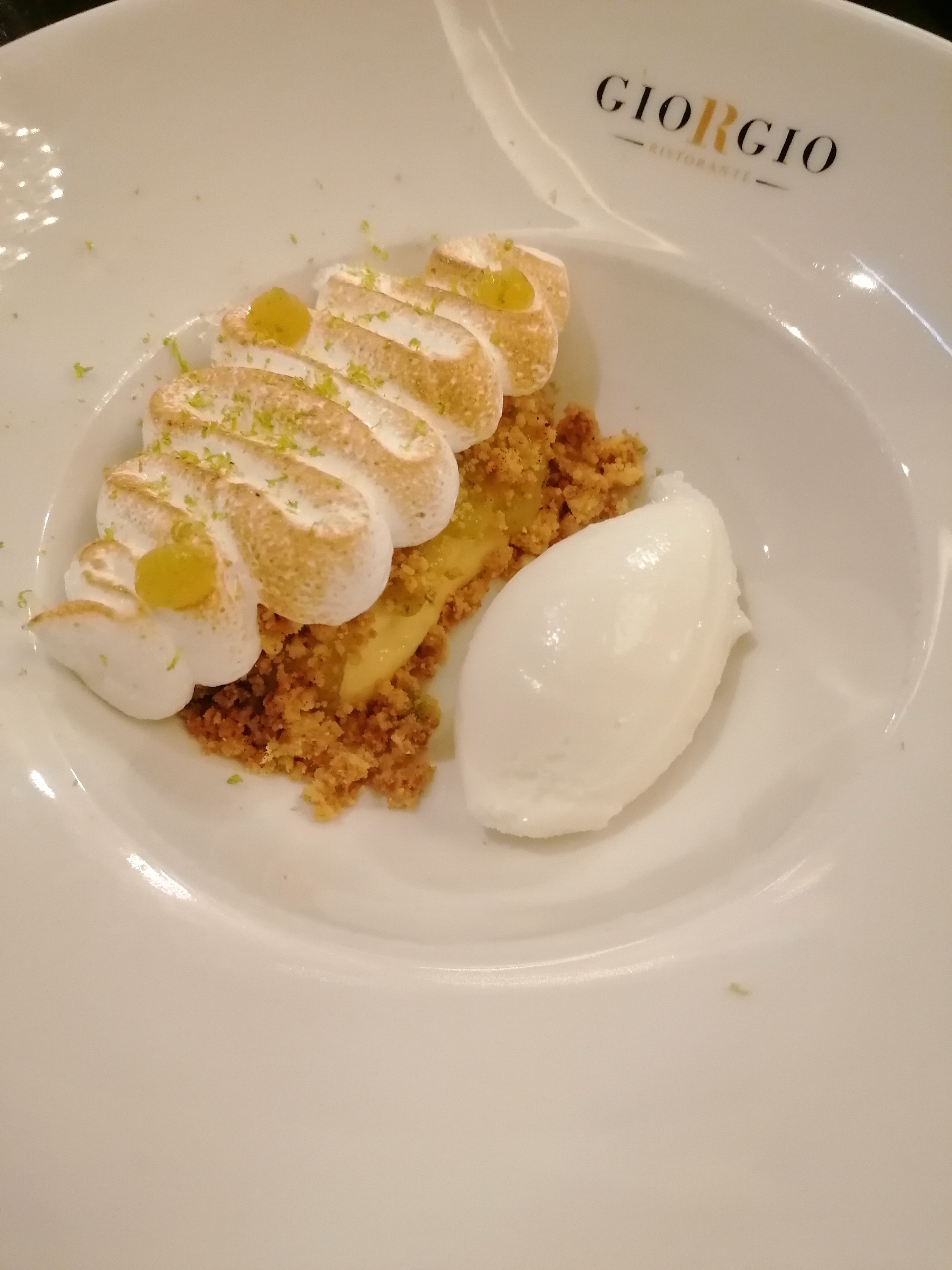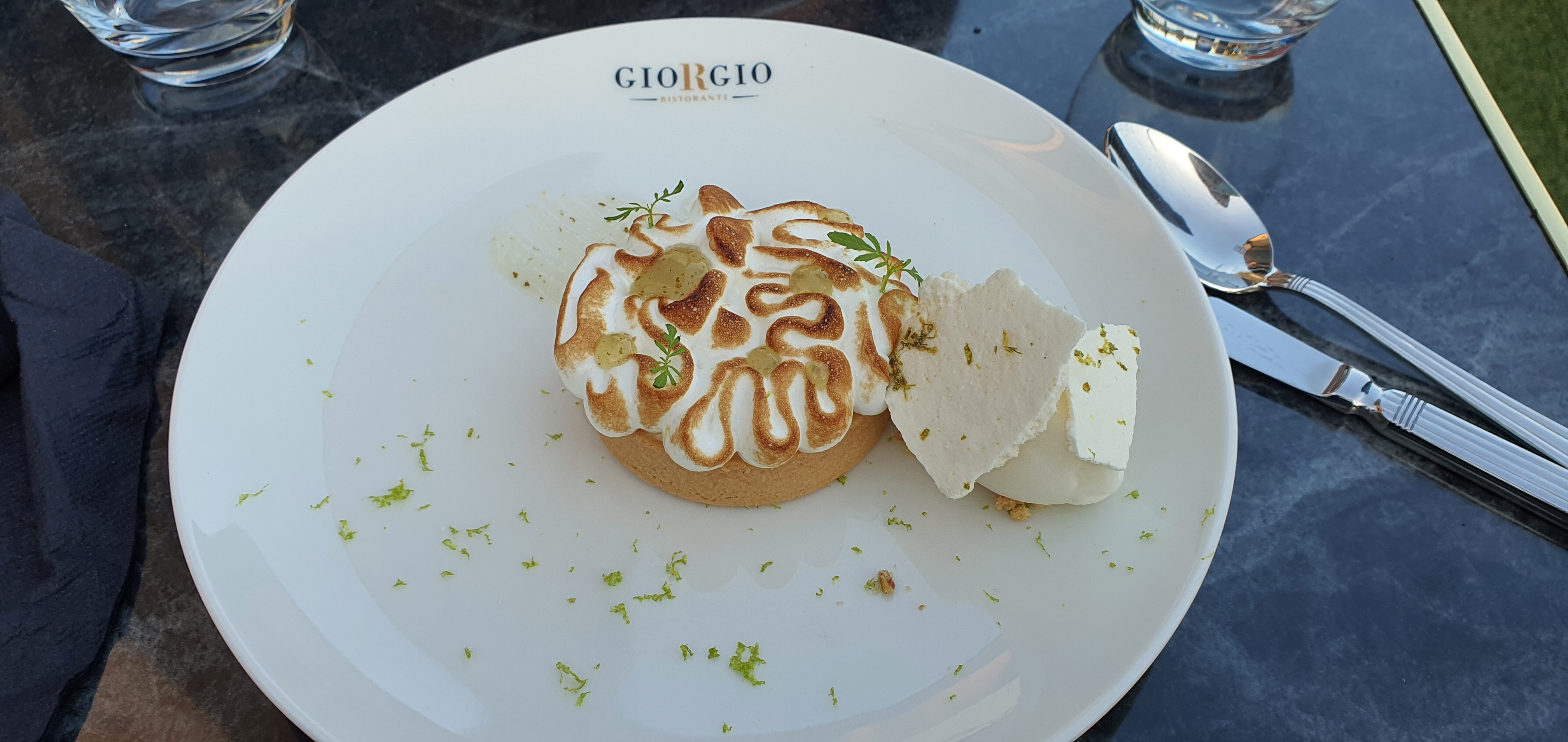 Changement de cadre avec Giorgio, je m'attendais vraiment à plus de goût, une pizza saumon basilic, sans goût (où est le basilic !? Une huile verte fluo, sans goût et servie tiède) et une tarte citron meringué (cette fois avec des noisettes de coulis de basilic, avec le goût du basilic que j'aurai aimé avoir sur la pizza avec des vrais feuilles que mélangé avec du citron) bouteille d'eau emmené au dessert après avoir demandé, dommage également... Sinon joli décor, dommage que les prix ne correspondent pas à la qualité des plats... 14.90 la pizza, 8.90 la tarte citron meringué