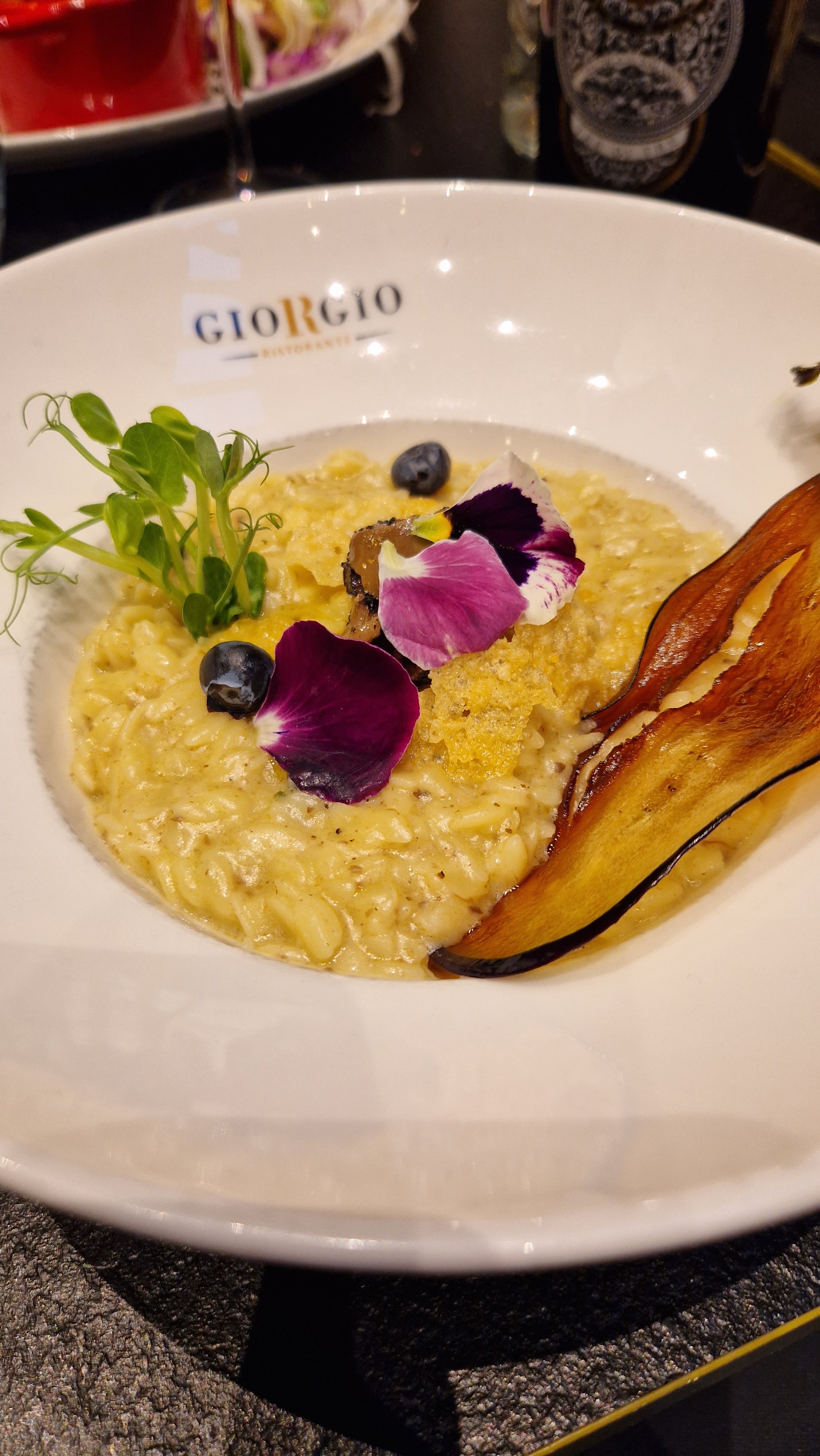 Première fois au Giorgio Que dire un sans faute Un accueil chaleureux et souriant. Un cadre cosy avec déco magnifique et concernant les plats au top Bravo à l’équipe