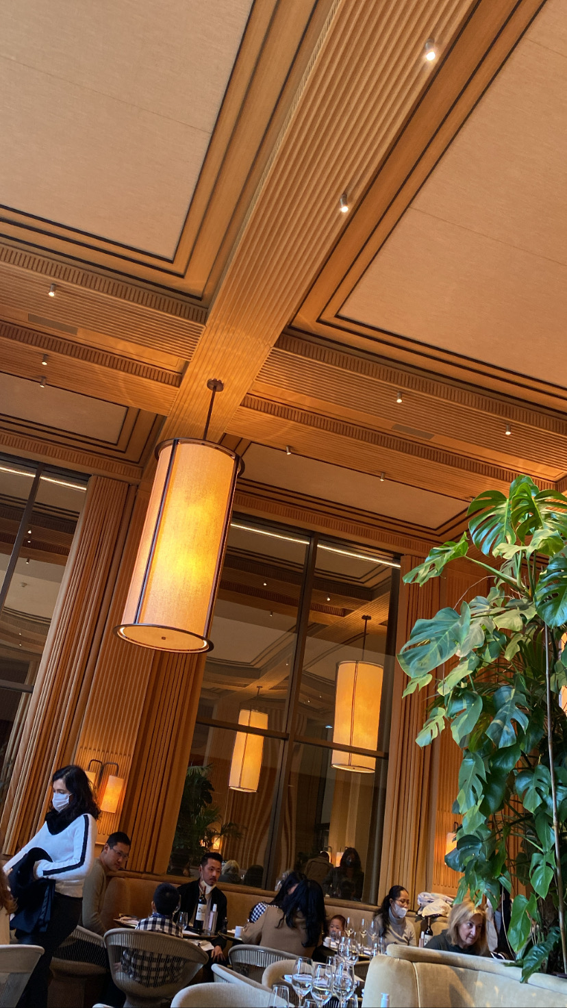 Je vais juger la suite Girafe dans cet avis, pas Girafe qui est au rez-de-chaussée. Le service est très bien mais les plats assez décevant en fait, hormis les desserts qui étaient très bons. En entrée c'était raviole langoustines que je n'ai pas trop aimé, à partager les sushis que je ne conseille pas trop, et les huîtres. En plat le filet de bar, pas trop de goût, c'est pourtant mon poisson préféré, mais sûrement la préparation et la sauce sont un peu décevante. Le dessert au chocolat est vraiment très bon. Sinon le service est très bien comme toujours dans ce type de restaurant.