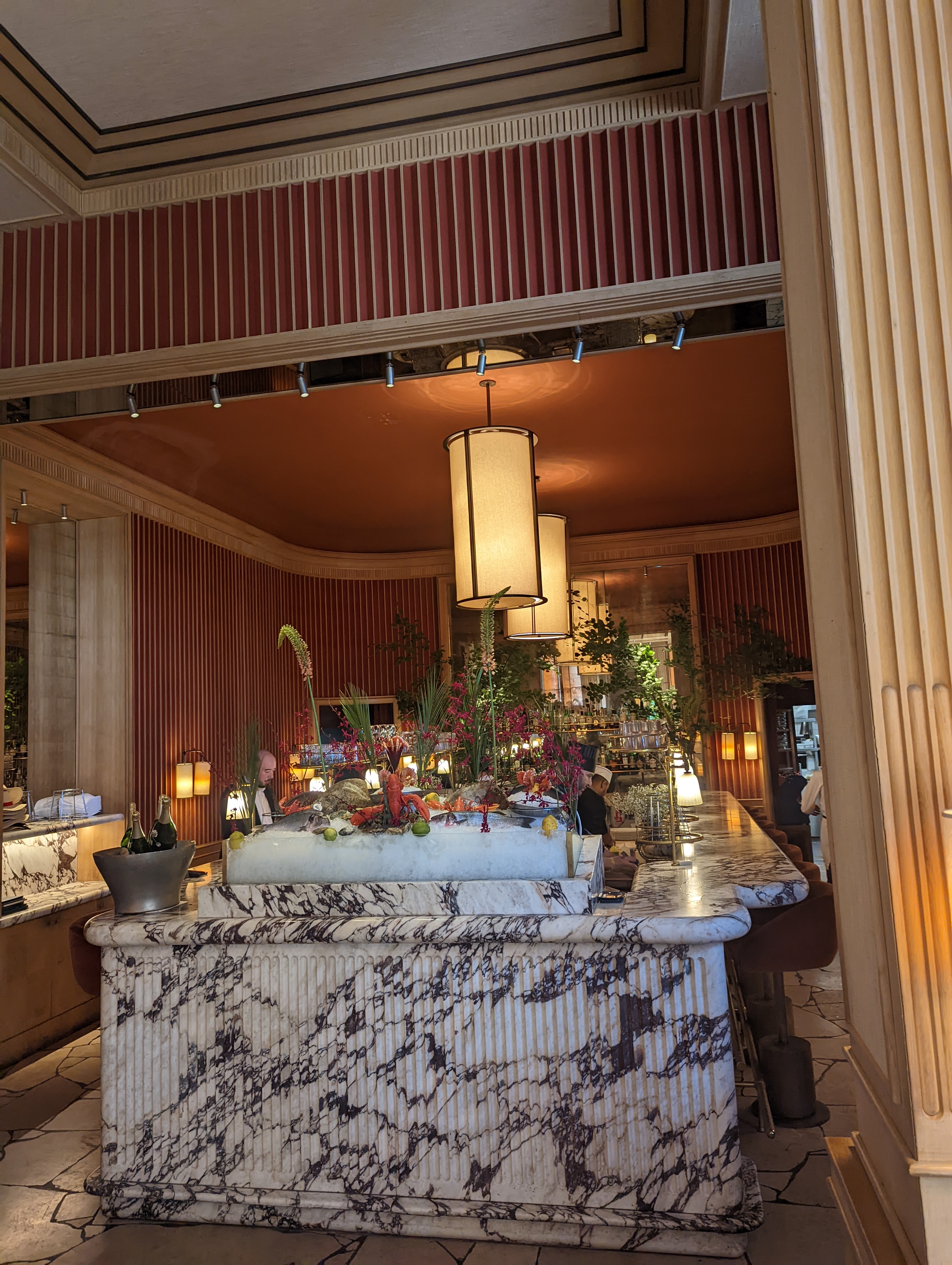 Expérience horrible et je ne donne généralement pas de mauvaises critiques. Malgré le fait que j'avais noté dans la réservation que nous avions choisi La Suite Girafe pour notre 25ème anniversaire de mariage et que nous voyagions depuis les États-Unis, nous étions assis à une petite table de cocktail dans le bar très fréquenté avec notre adossé au mur et pas de vue. J'ai dû demander à plusieurs reprises à être transférée vers plusieurs employés différents. En fin de compte, nous avons été transférés à une meilleure table (seulement après nous être sentis comme des connards à propos de tout cela... comme s'ils nous rendaient service), pour ensuite être complètement déçus à tous égards : service, qualité de la nourriture. , et l'ambiance. La seule chose qui était impressionnante était le montant faramineux de notre facture. La Suite Girafe n'a littéralement RIEN fait pour rendre notre soirée du 25 e anniversaire spéciale - pas de table spéciale, pas de coupes de champagne de célébration, pas de dessert gratuit, rien. Pour un restaurant qui est censé être parmi les meilleurs de Paris et qui obtient des choses comme celle-ci, ils ont raté littéralement toutes les cibles. Il existe de bien meilleures expériences et restaurants pour beaucoup moins d’argent. Continue de regarder.