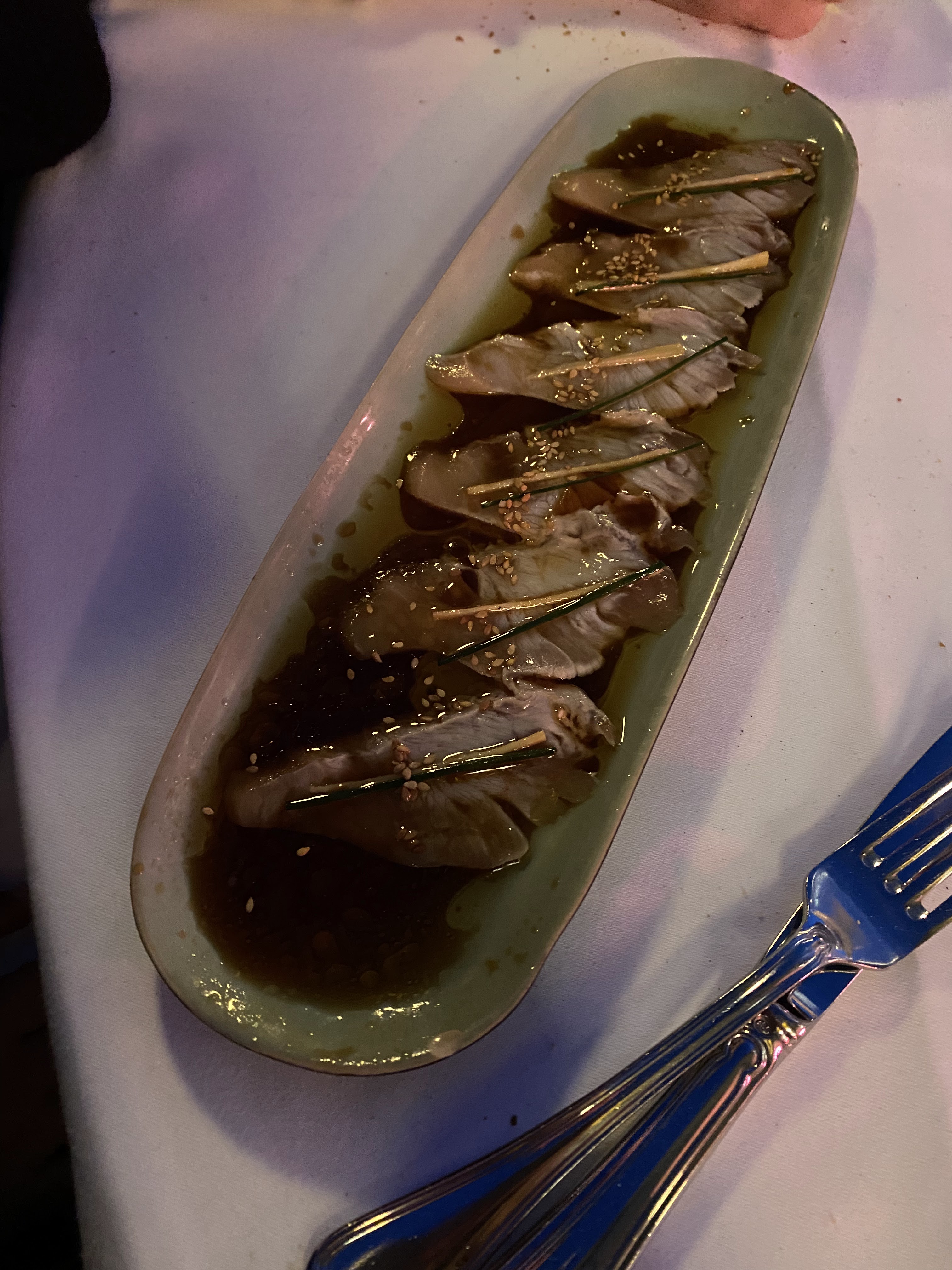 Superbe expérience absolue car tout était tellement délicieux! Le poulpe grillé est un incontournable et l'huître « noisette » était pleine de saveur. La seule chose c'est qu'il a plu le jour où j'y suis allé donc je ne me suis pas assis en terrasse mais c'était quand même un restaurant agréable où dîner. Je recommande fortement de réserver 1 à 2 semaines à l'avance car les disponibilités semblent être très limitées.