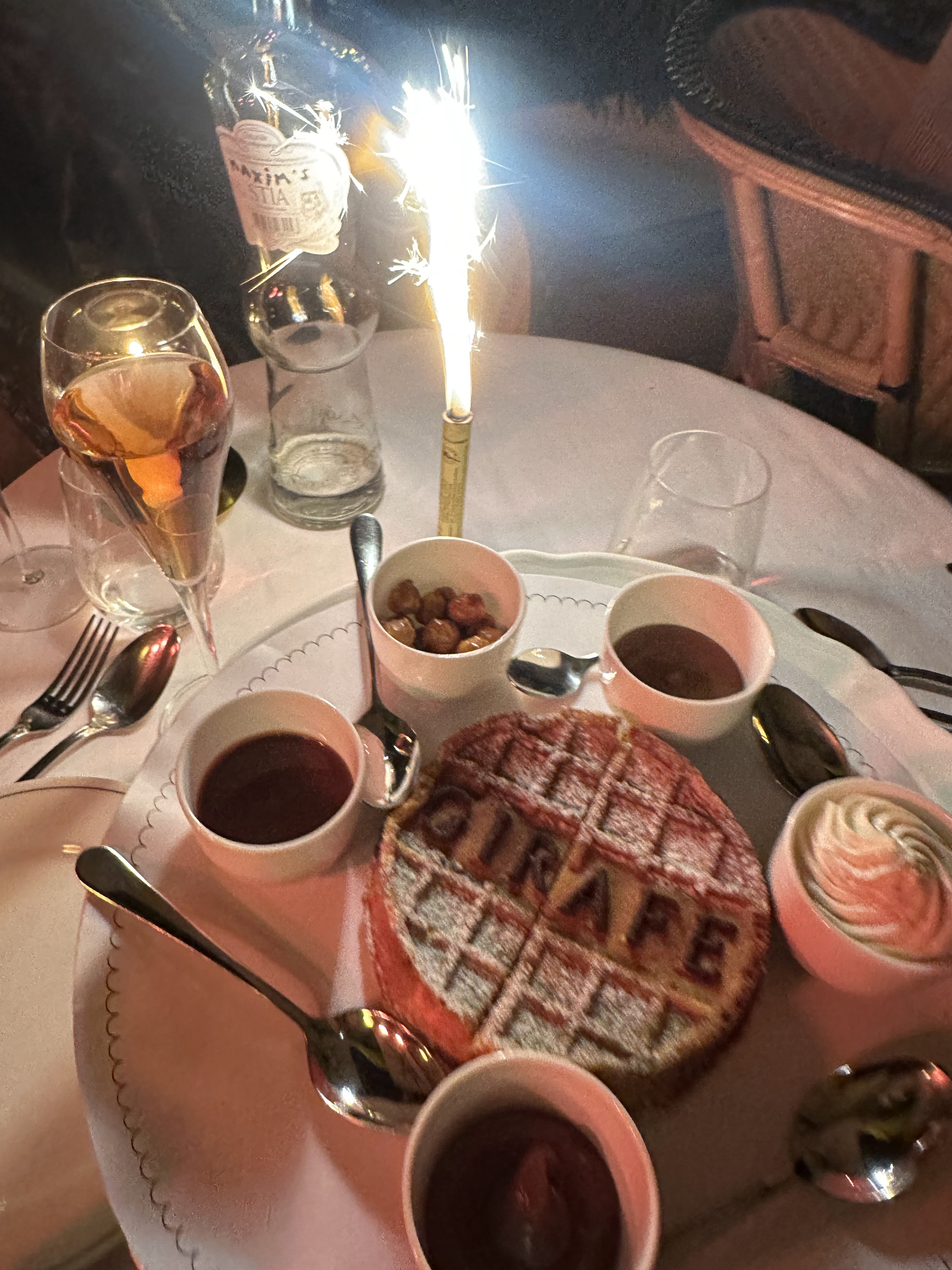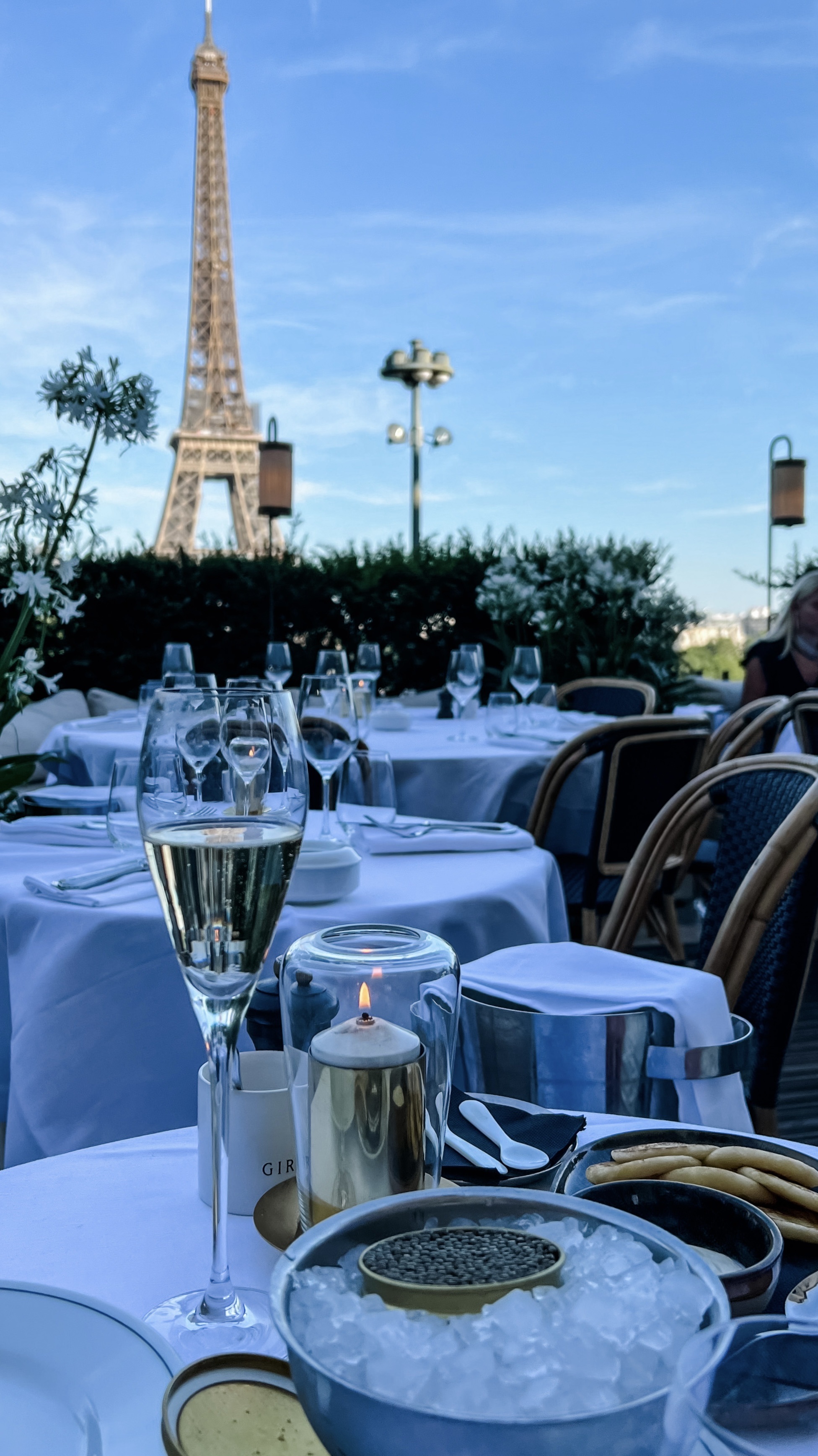 À Paris, Girafe est toujours un incontournable. Situé sur la place du Trocadéro, vous bénéficiez de l'une des meilleures places pour admirer le spectacle de lumière de la Tour Eiffel. Le personnel était très arrangeant car notre hôtel s'est trompé de réservation de 30 minutes, ce qui signifie généralement que vous n'avez plus de délai de grâce pour vous asseoir. Merci au personnel de nous avoir gracieusement assis même en étant en retard. A noter que leurs réservations pour le dîner sont valables pour 19h et 22h uniquement. C'était la deuxième fois que je fêtais mon anniversaire avec Girafe et ils le rendent toujours spécial avec des chouquettes vanille-praliné à tremper dans au chocolat et de magnifiques cierges magiques. C'est toujours un moment inoubliable !