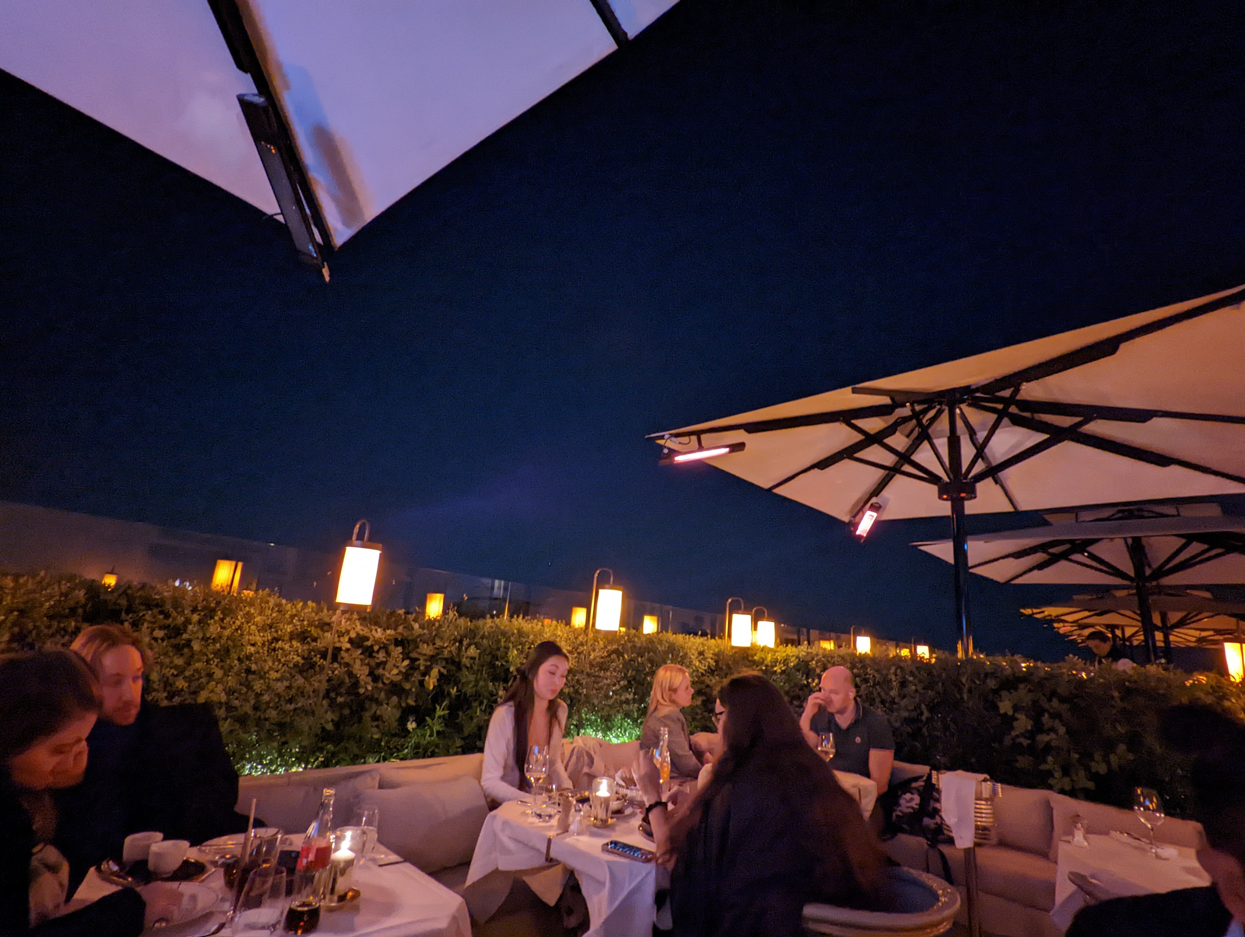 Nous y sommes allés sur recommandation d'un ami - nous n'avons eu aucun problème pour obtenir une réservation (je crois qu'ils n'ouvrent leurs livres qu'une semaine à l'avance ?) et nous sommes allés à La Suite Girafe. Les serveurs étaient très gentils avec nous, quoique un peu lents, et la vue est magnifique. La nourriture était meilleure que ce à quoi je m'attendais (je pensais que c'était plus une question d'exclusivité et de scène de l'espace que de qualité de la nourriture), mais j'ai été agréablement surpris. Bons cocktails, jolies vues. Ce n'est pas mon choix habituel d'établissement mais nous sommes heureux d'y être allés.