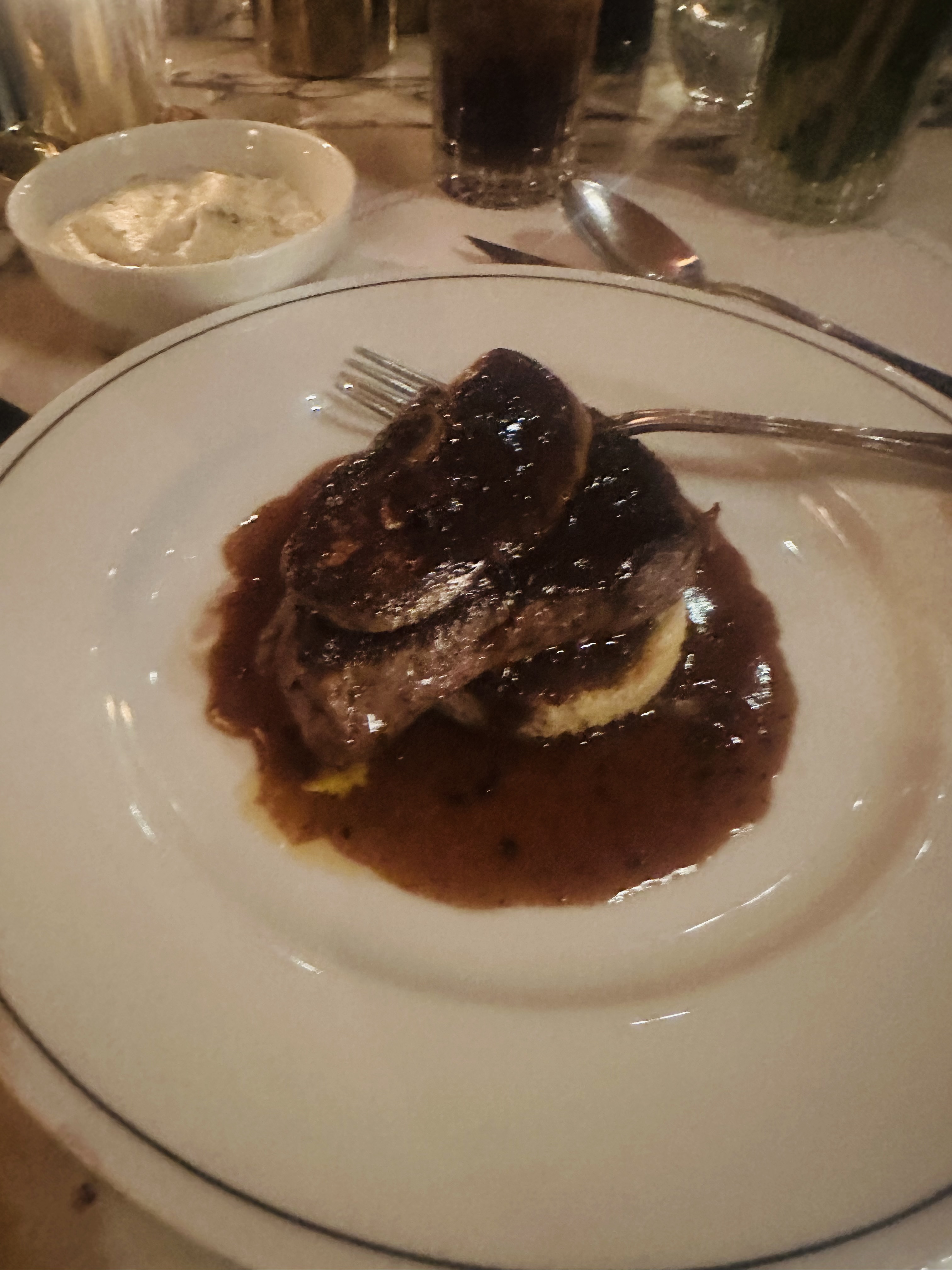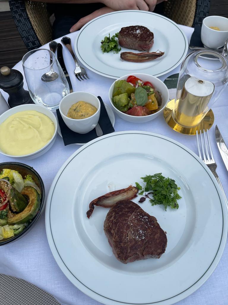 La nourriture et l'ambiance étaient vraiment géniales. Nous avons commandé la tour de fruits de mer pour l'apéritif et je n'avais jamais mangé de bulots auparavant, mais ils étaient vraiment bons. Le steak que j'avais pour le plat principal était également excellent, mais la meilleure partie du dîner était évidemment la vue depuis la terrasse extérieure. J'ai vraiment hâte d'y retourner.